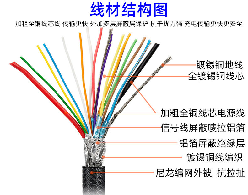 | Color | PQ119 black woven mesh cable,PQ119 gun color mesh cable,PQ118 black aluminum shell wire,PQ118 gun color aluminum shell wire,PQ118 gray aluminum shell wire |