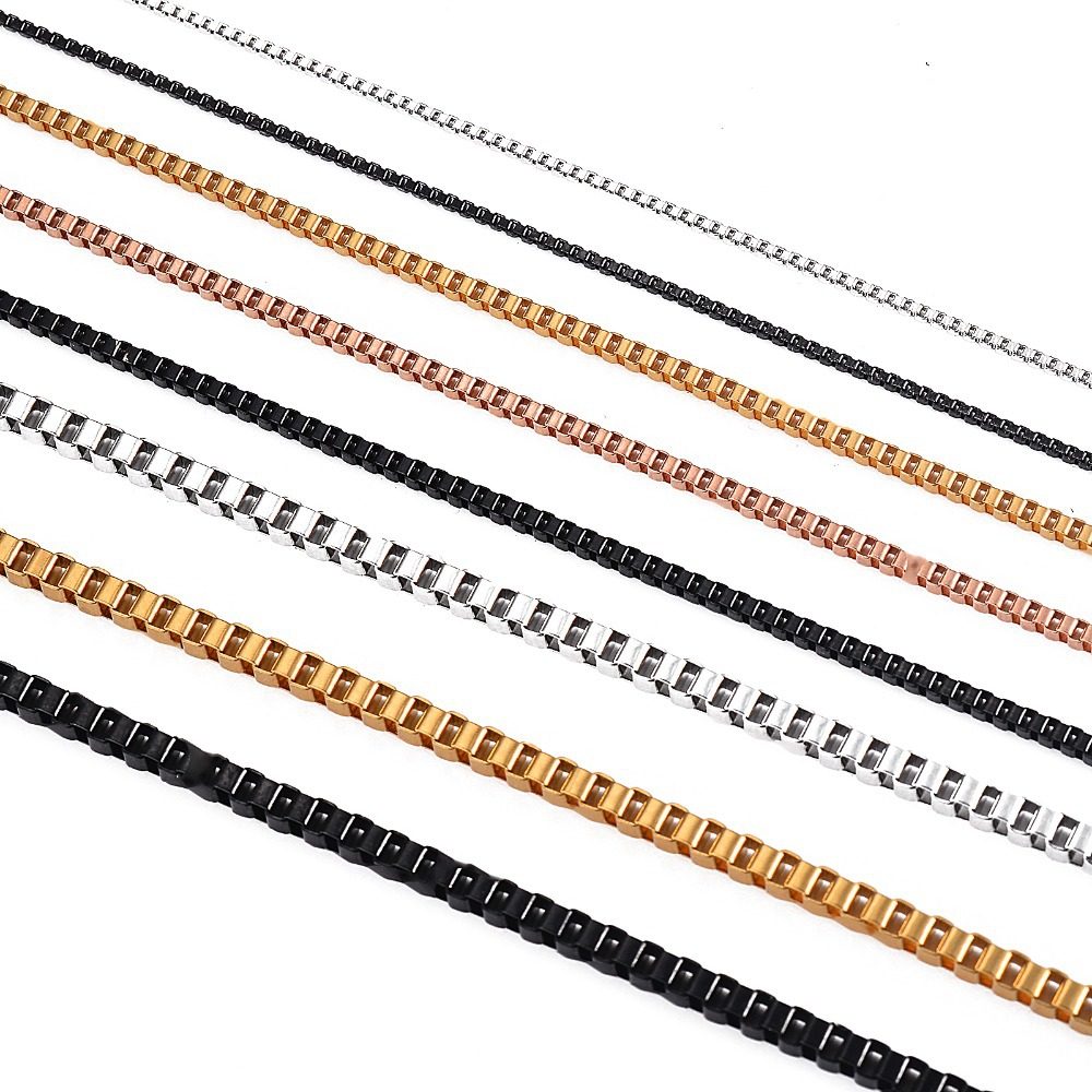 Cross-Border European and American Stainless Steel Box Chain Clavicle Chain Geometric Necklace Electroplated Gold Square Box Chain Clavicle Chain Necklace