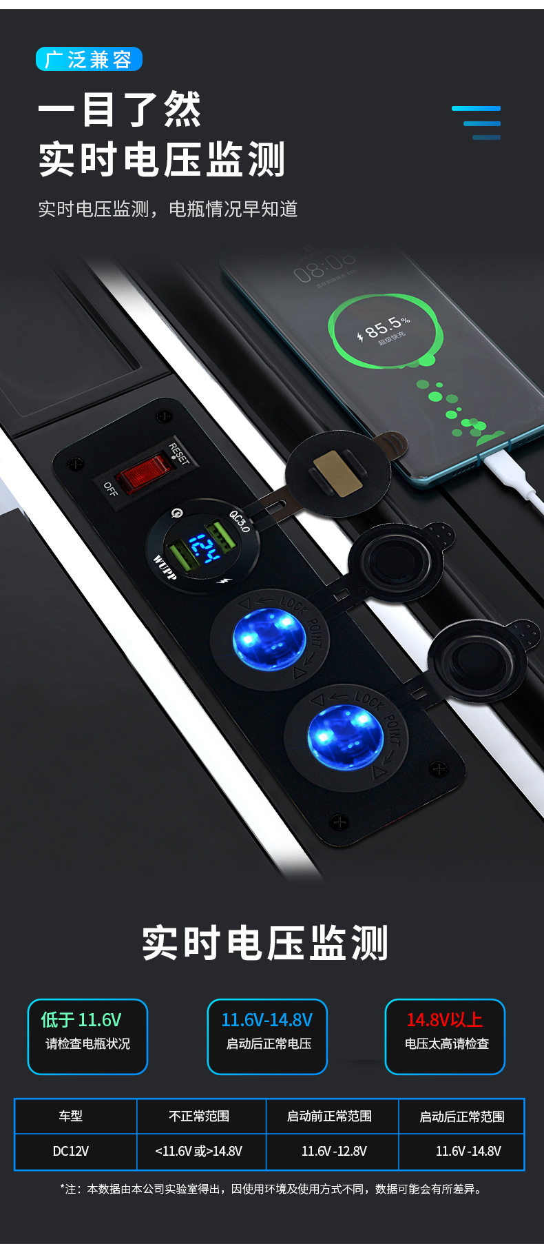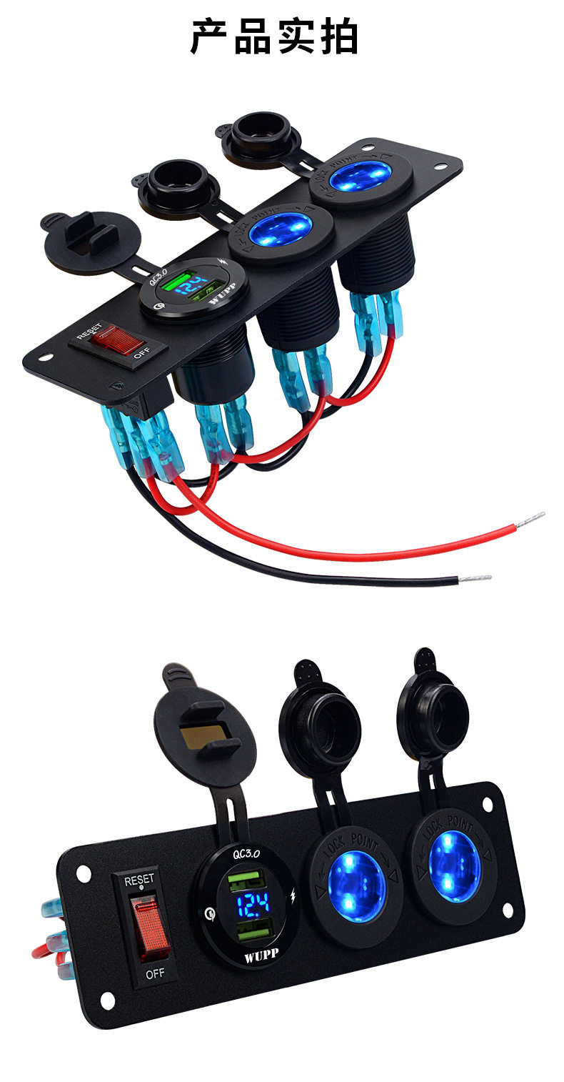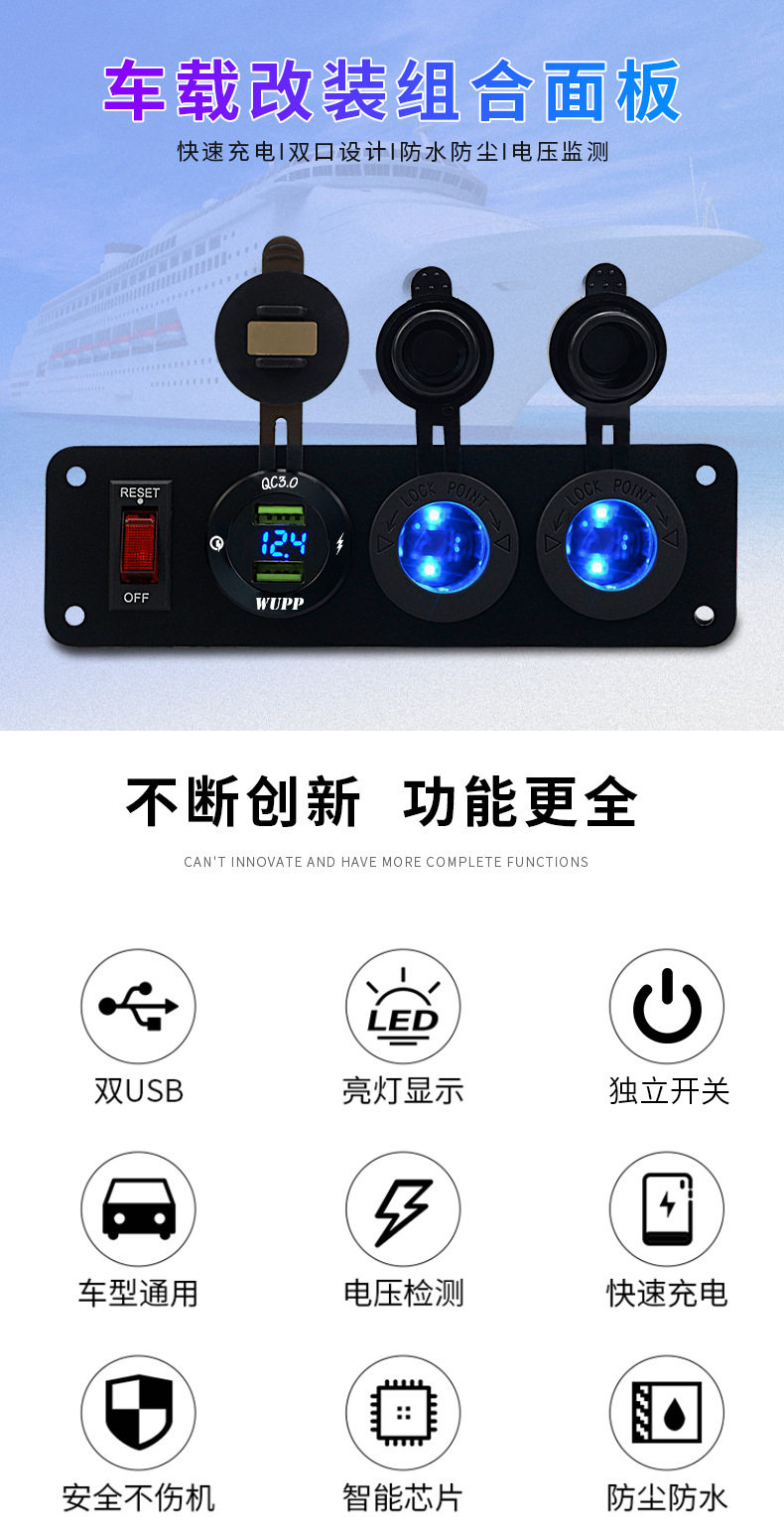 Car central control modified car single QC3.0 mobile phone charger digital display voltage with light double electric seat 12v combination