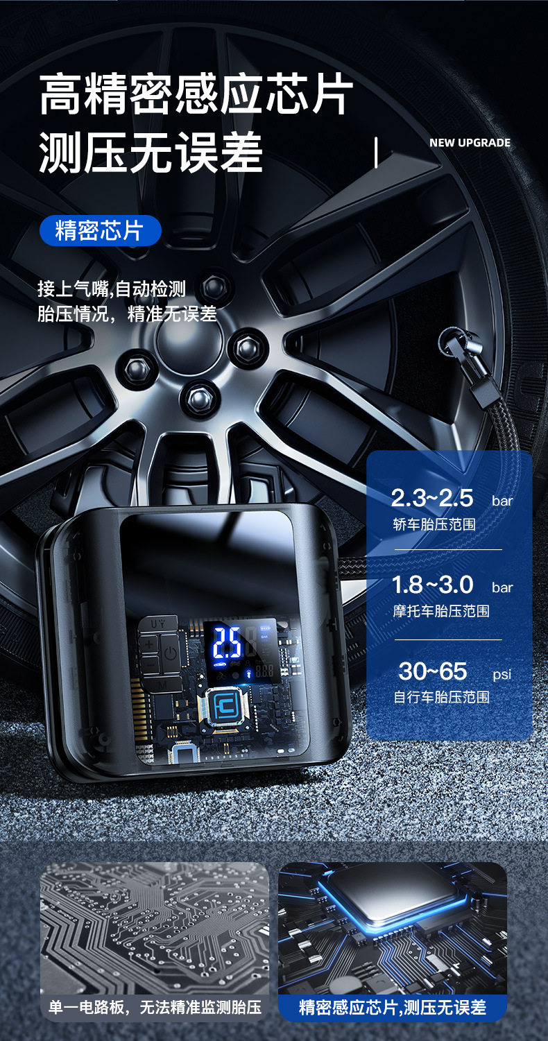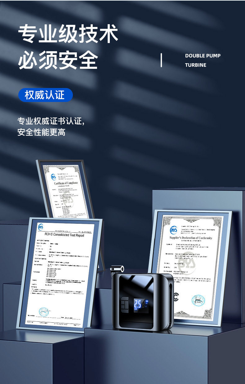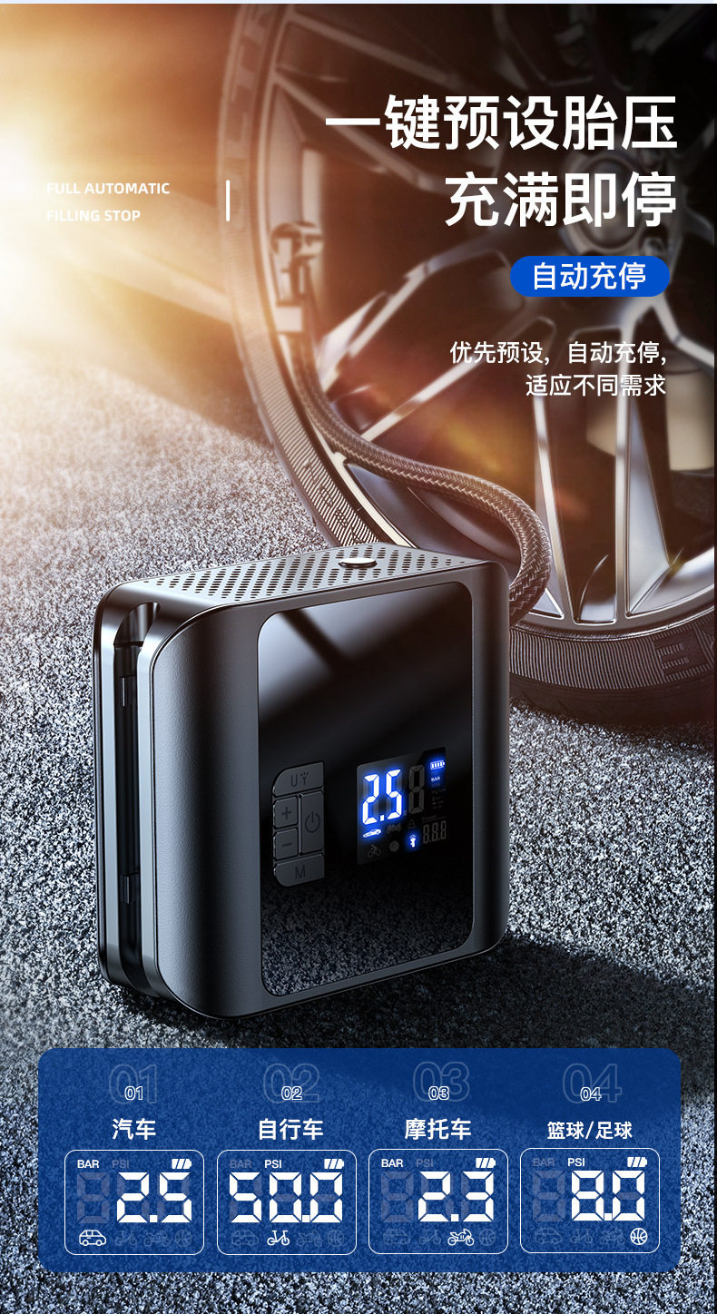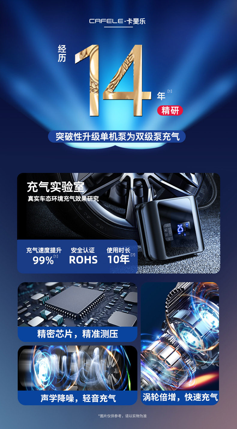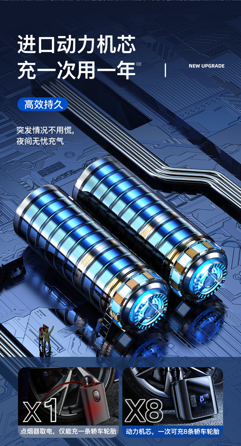 Carfeile high-power double-cylinder wireless car air pump tire pressure detection car tire air pump multifunctional