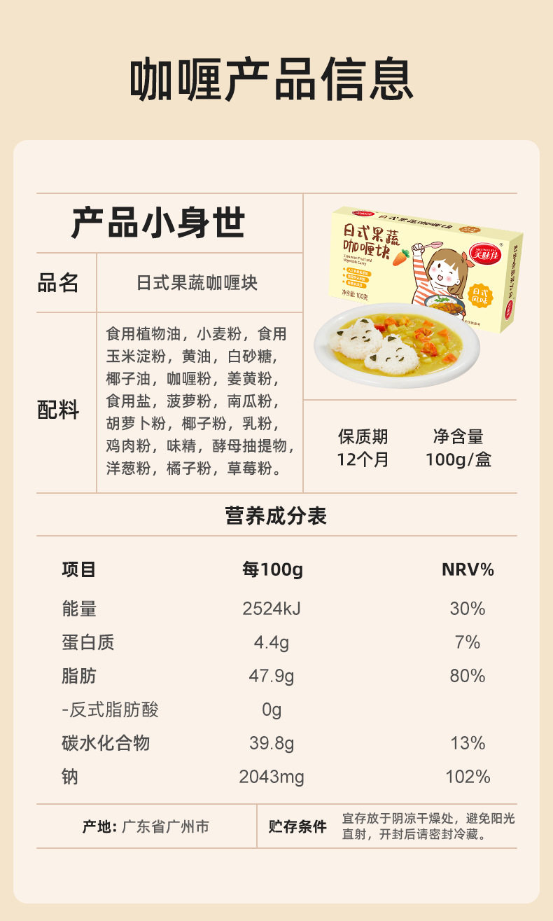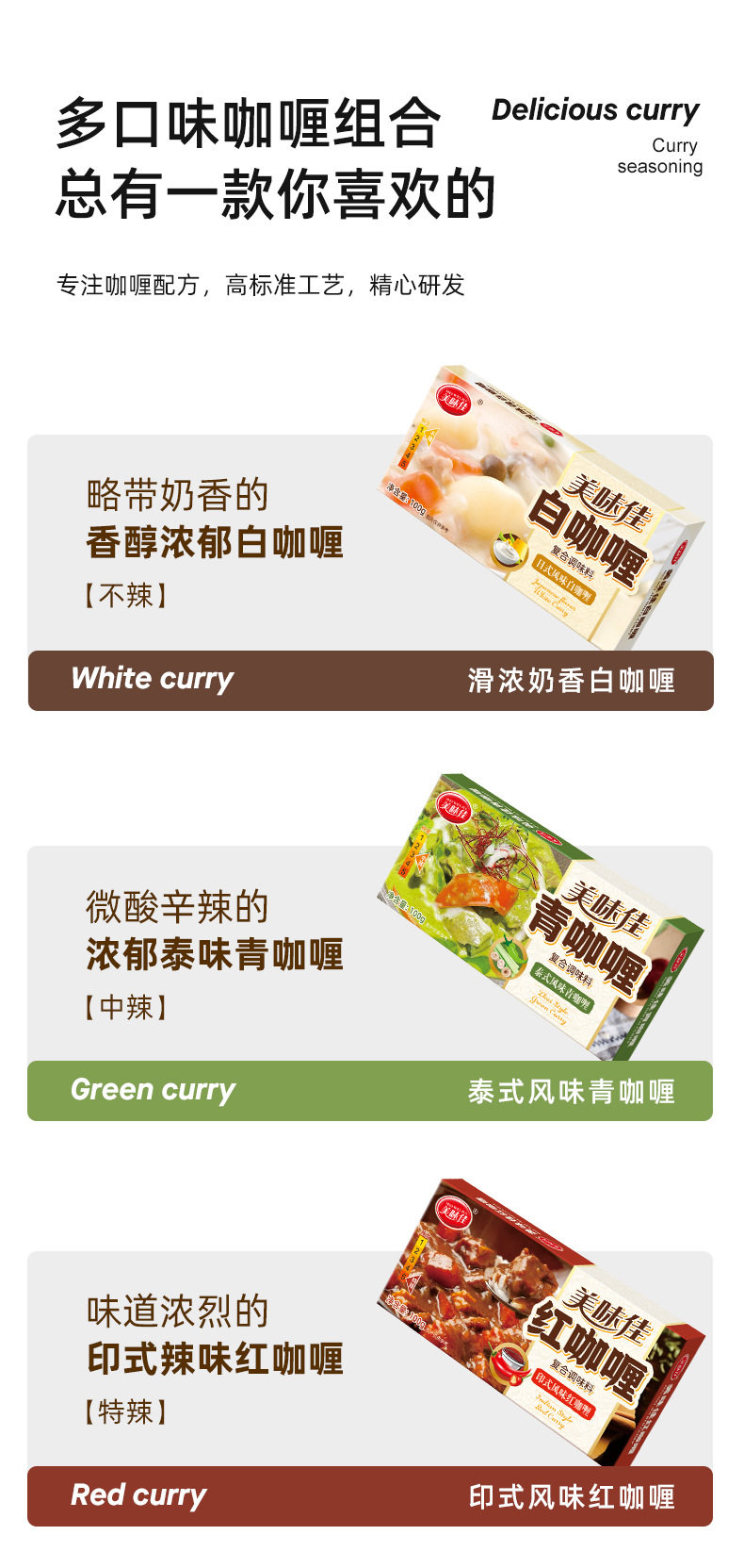 | Packing specification | Green box: original 1 box * 100g,Green box: slightly spicy 1 box * 100g,Green box: spicy 1 box * 100g,Japanese milk white curry block 1 box * 100g,Indian red curry block 1 box * 100g,Thai green curry block 1 box * 100g,Children: fruit and vegetable curry 1 box * 100g,Children: coconut curry 1 box * 100g |