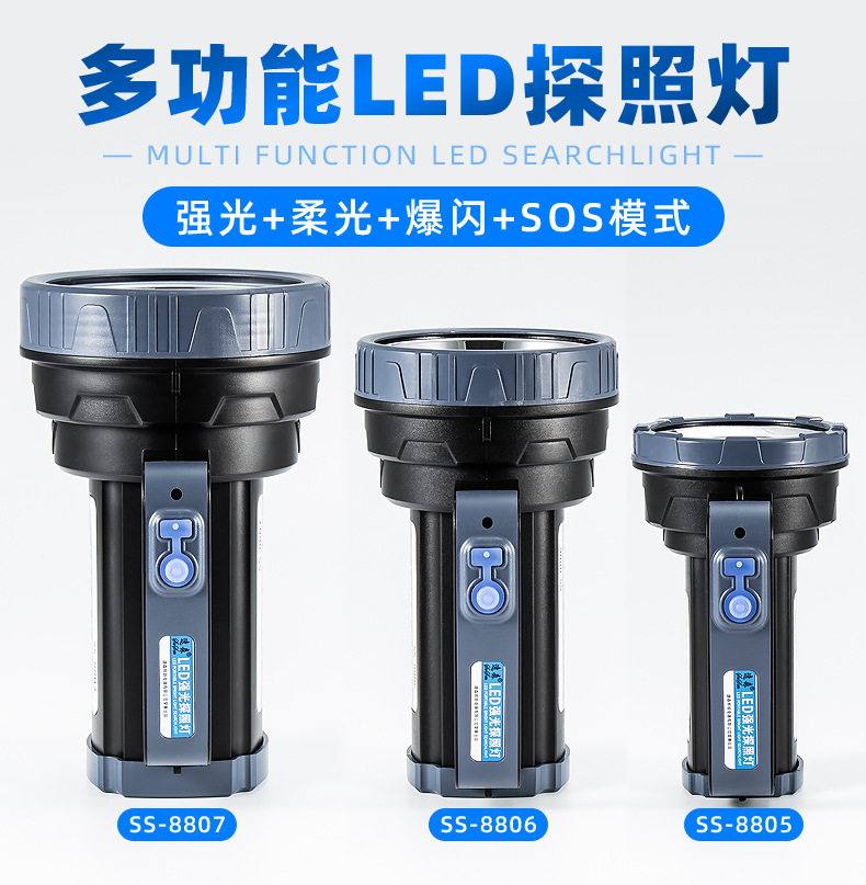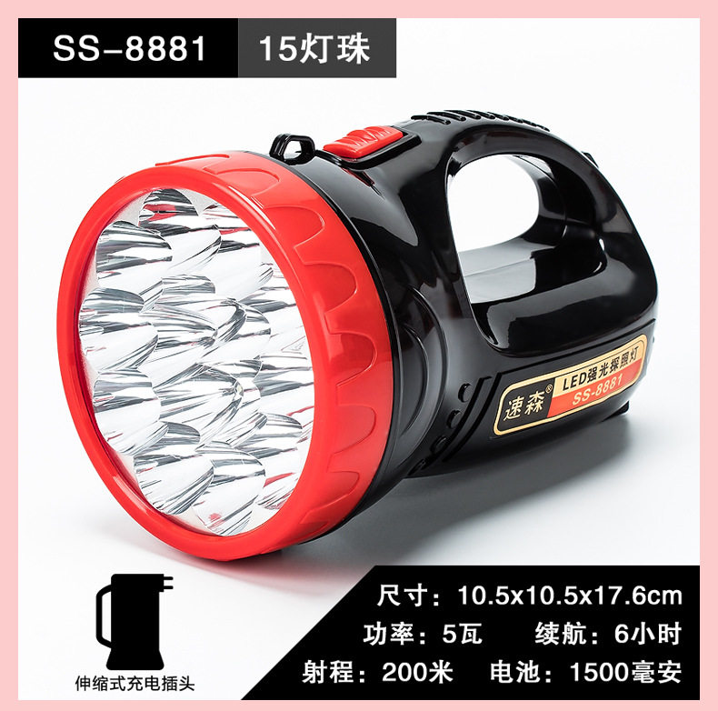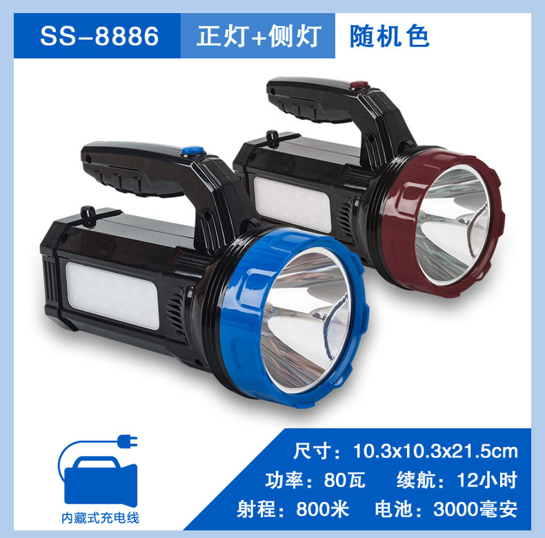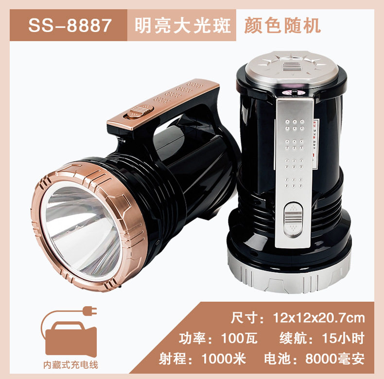 | Color | 6688: 5w-4 hours- 100m,6699+ side lights: 5w-4 hours- 100m,V-1622l with side light (300.8m hours),8801+ side light: 10w-6 hours- 150m,8802+ side light: 10w-6 hours- 150m,8881 (15 lamp beads): 20w-6 hours- 200m,8881-1 (1 lamp bead): 30w-6 hours- 300m,8881 red (15 lamp beads): 20w-6 hours- 200m,8881 scorpion light (10 purple light 5 white light),8881 scorpion lamp (10 purple lights, 5 white lights) comes with tweezers,5566 portable light + side light + solar charging + usb output,8883 (lithium battery): 50w-8 hours- 500m,8803: 60w-10 hours- 600m,8882: 80w-10 hours- 800m,8886+ side light: 80w-12h- 800m,8885: 100w-15 hours- 1000m,8887: 100w-15 hours- 1000m,8888a+ power bank function: 150w-20 hours- 1500m,8889+ power bank function: 200w-30 hours- 2000m,8805 (lithium battery): 40w-7 hours- 500m,8806 (lithium battery): 60w-10 hours- 800m,8807 (lithium battery): 80w-12 hours- 1000m,8808 (lithium battery): 100w-10 hours- 1200m,8809 (lithium battery): 120w-15 hours- 1200m,8810 laser cannon: 100w-12 hours- 1000m,8811 laser cannon: 200w-12 hours- 1500m,8812 laser cannon: 300w-12 hours- 2000m,8812 laser cannon + side light: 300w-12 hours- 2000m,8813 laser cannon: 150w-12 hours- 1200m,8815 zoom laser cannon: 100w-10 hours- 1200m,8816 zoom laser cannon + side light: 100w-10 hours- 1200m |