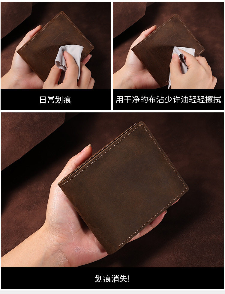 Cross-border supply of crazy horse leather men's short wallet retro leather multi-functional long wallet card bag factory hot sale