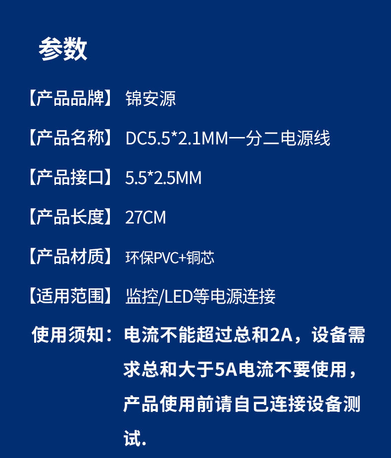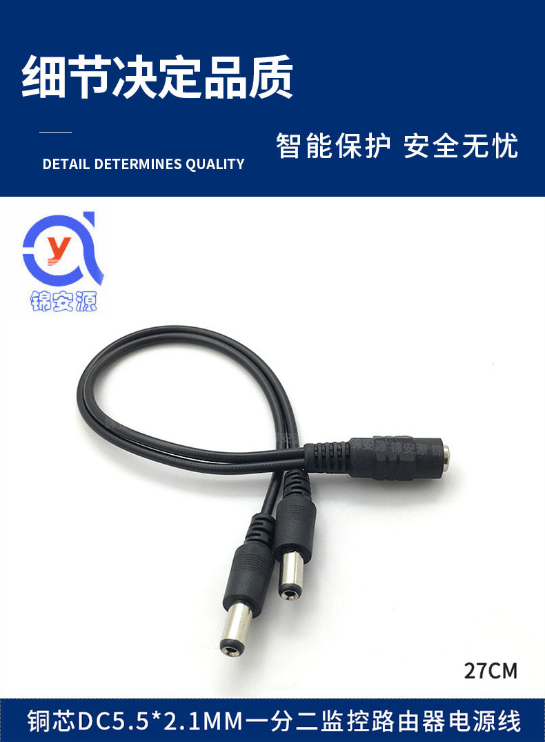 dc power supply sub-wiring pure copper 5.5*2.1 One-to-two power supply line 1 female sub -2 male extension extension power line