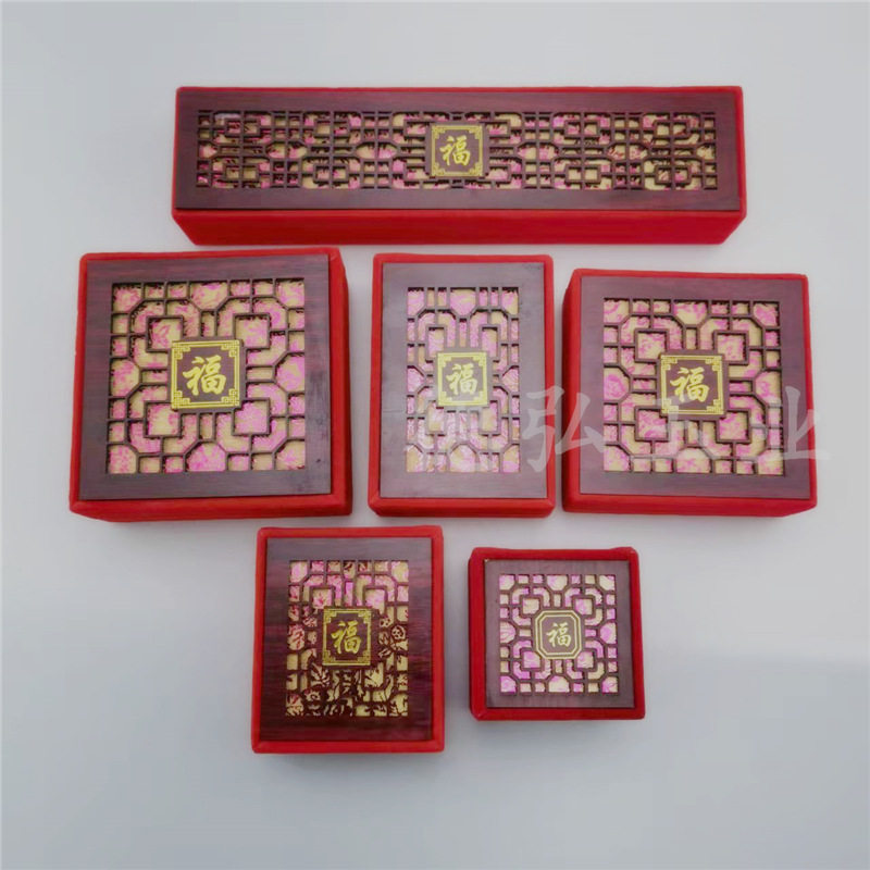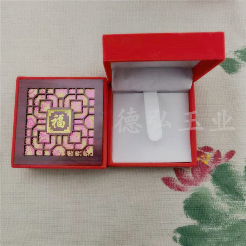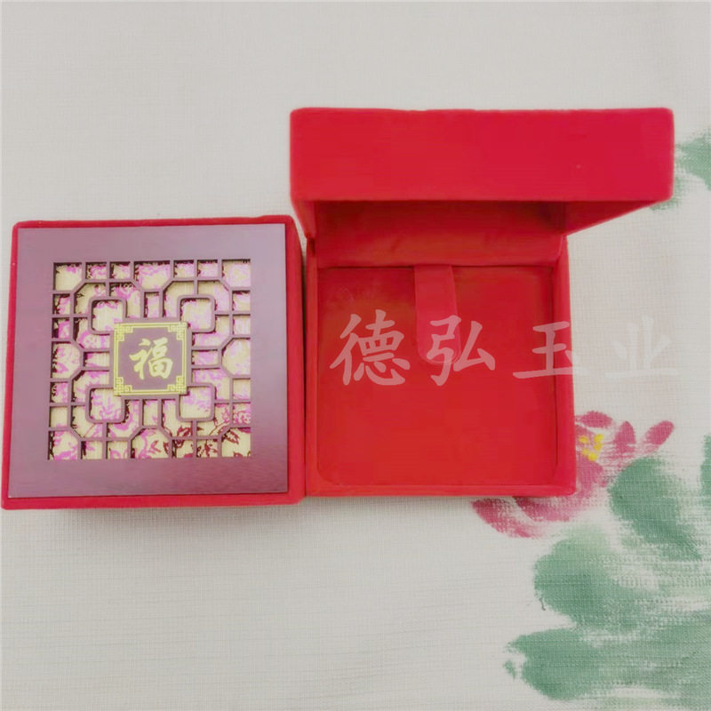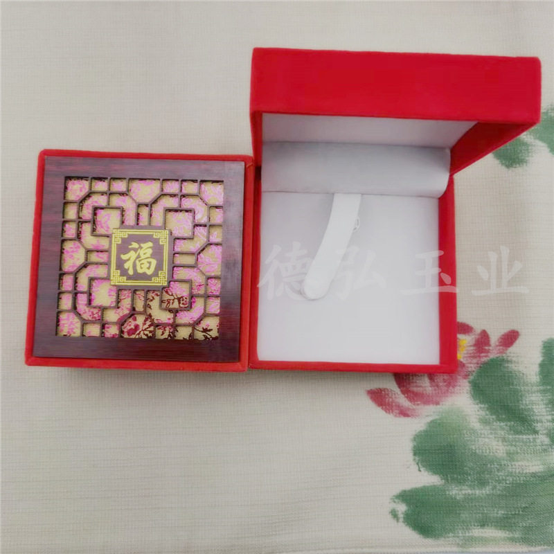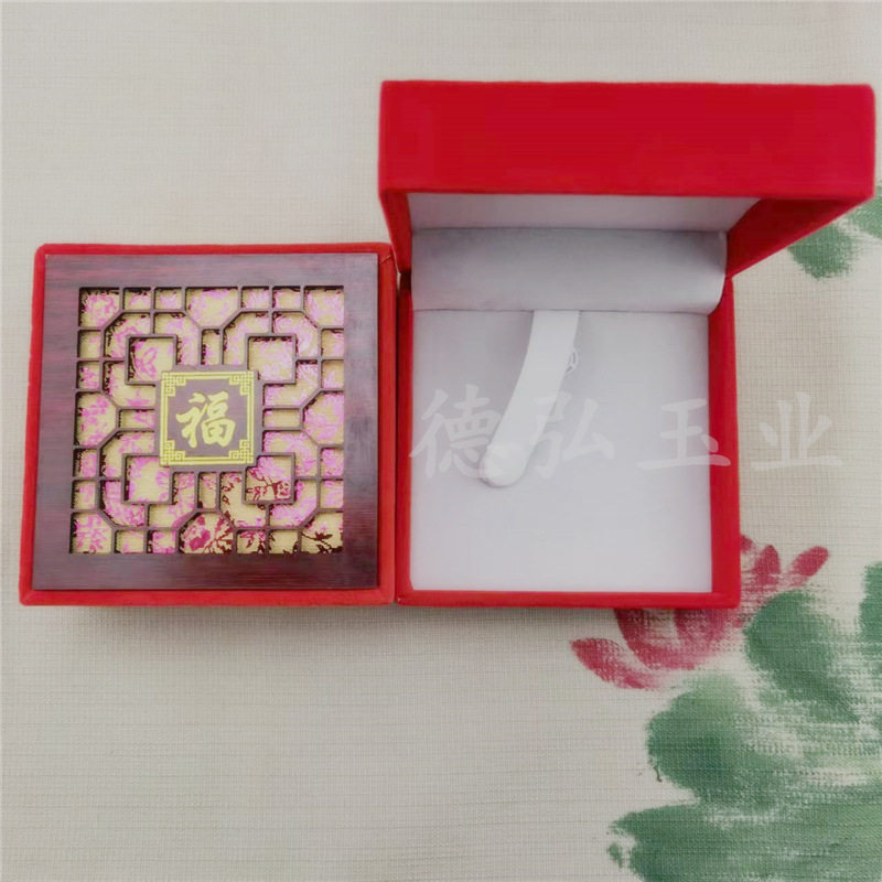 Factory wholesale red velvet hollow lucky word packaging box necklace jade bracelet pendant ring all kinds of jade gift jewelry box