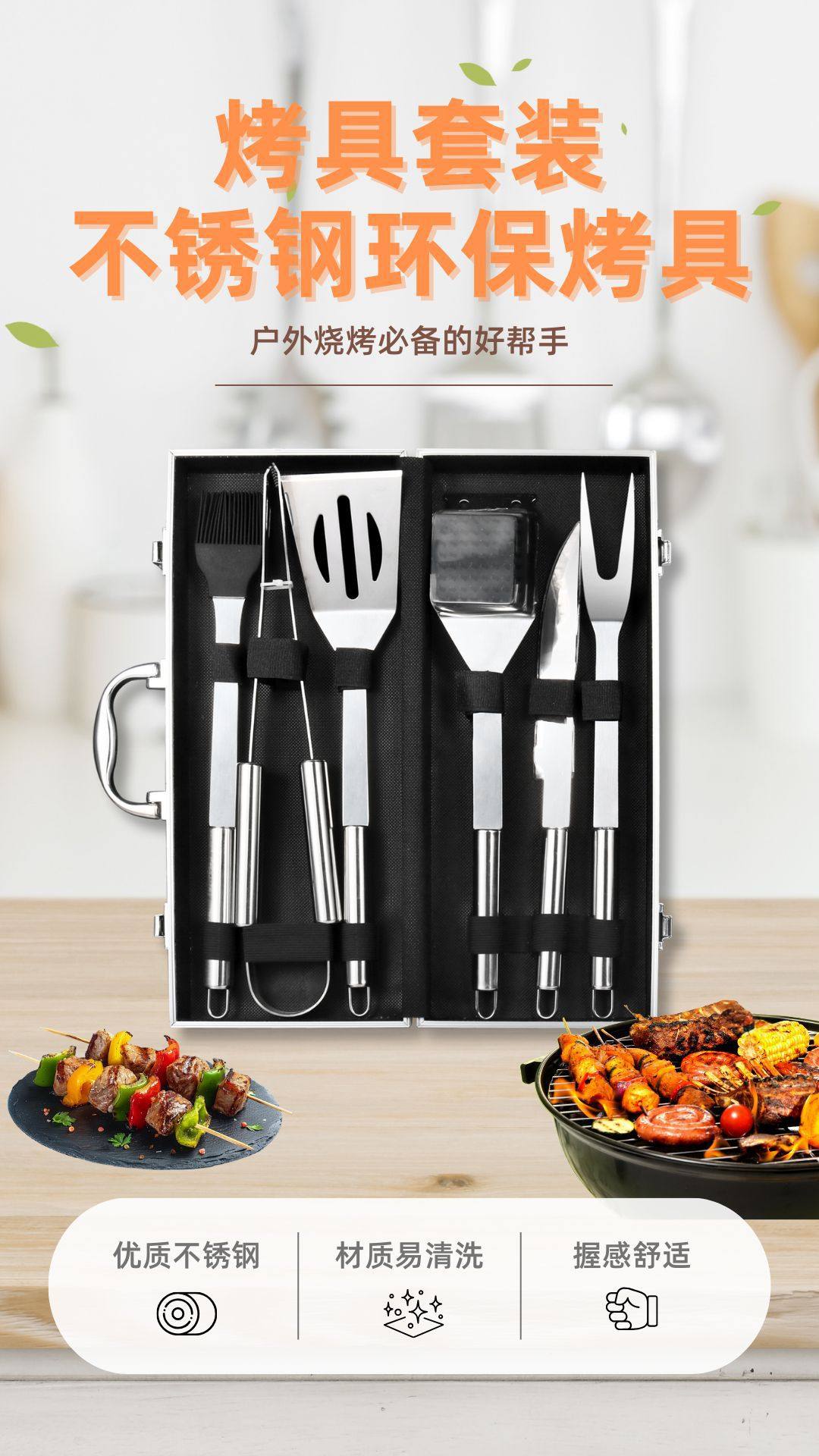 Amazon Hot Outdoor BBQ Tools Set Six-piece Baking Aluminum Box Set Overseas Direct Selling