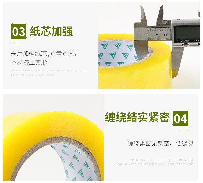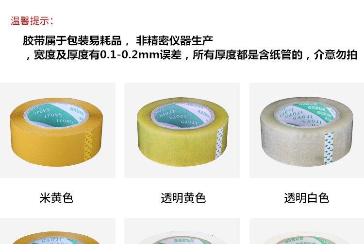 | Specifications and models | Transparent yellow; Width 4.5 * Length 100 * Thickness 2.0 (whole box 54 rolls),Transparent yellow; Wide 4.5 * long 150 * thick 2.5 (whole box 48 rolls),Transparent yellow; Width 4.5 * Length 200 * Thickness 3.0 (36 rolls in whole box),Transparent yellow; Width 5 * Length 100 * Thickness 2.0 (54 rolls in whole box),Transparent yellow; Width 5 * length 150 * thick 2.5 (whole box 48 rolls),Transparent yellow; Width 5 * Length 200 * Thickness 3.0 (36 rolls in whole box),Transparent yellow; Width 5.5 * length 100 * thickness 2.0 (whole box 45 rolls),Transparent yellow; Width 5.5 * Length 150 * Thickness 2.5 (40 rolls in whole box),Transparent yellow; Width 5.5 * Length 200 * Thickness 3.0 (30 rolls in whole box),Transparent yellow; Width 6 * length 100 * thick 2.0 (whole box 45 rolls),Transparent yellow; Width 6 * length 150 * thick 2.5 (whole box 40 rolls),Transparent yellow; Width 6 * Length 200 * Thickness 3.0 (30 rolls in whole box),Transparent yellow; Width 4.5 * length 22 * thick 0.7 (whole box 90 rolls),Transparent yellow; Width 4 * Length 150 * Thickness 2.5 (56 rolls in whole box),Transparent yellow; Width 8 * Length 150 * Thickness 2.5 (24 rolls in whole box) |