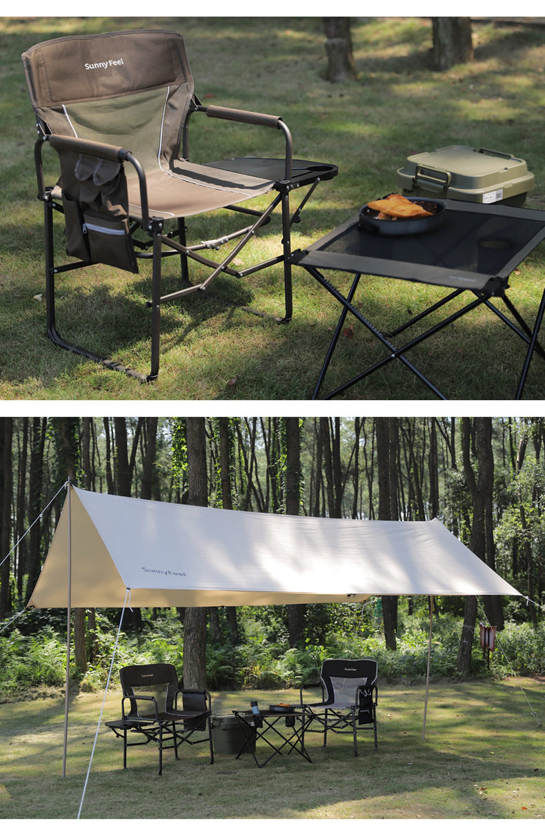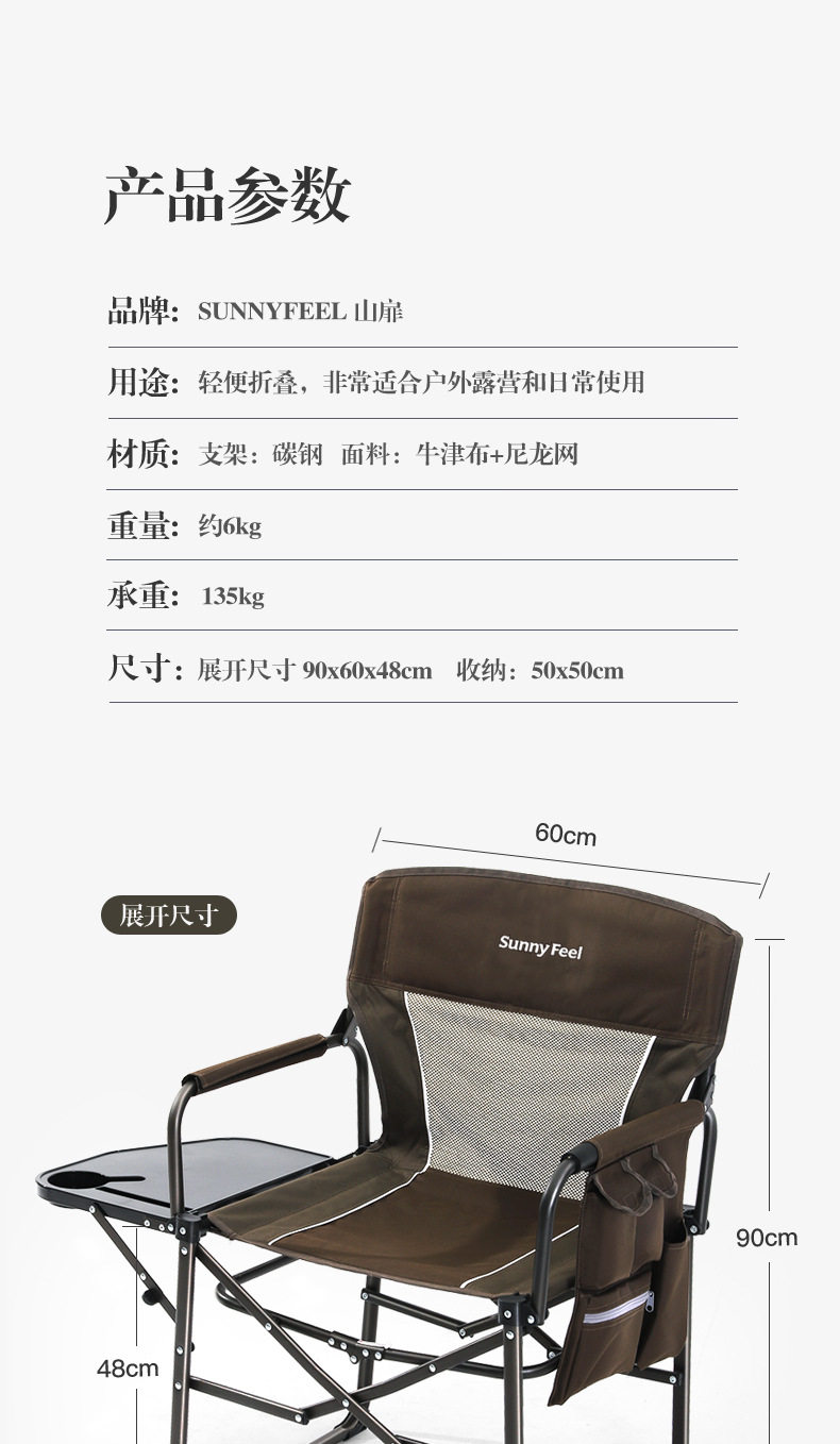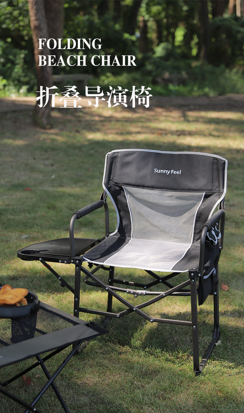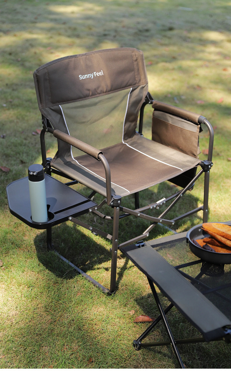 SunnyFeel Outdoor Folding Chair Mountain Camping Director's Chair Dinner Camping Chair Mesh Backrest Table Chair