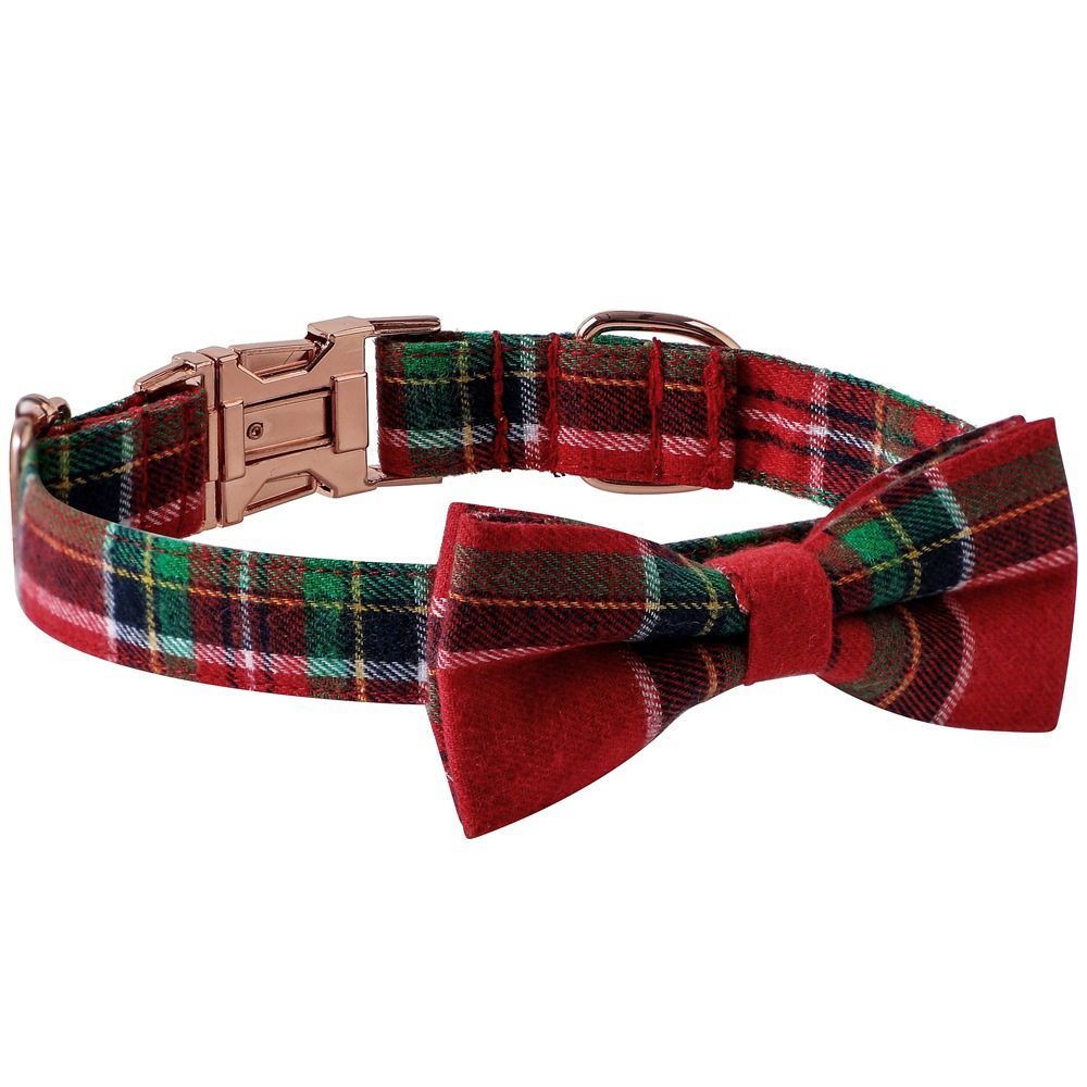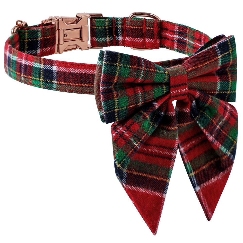 Manufacturer Wholesale Cross-Border Hot Selling Pet Collar British Style Christmas Plaid Rose Gold Buckle Collar Bow