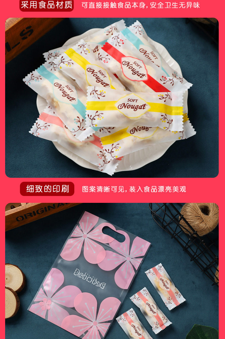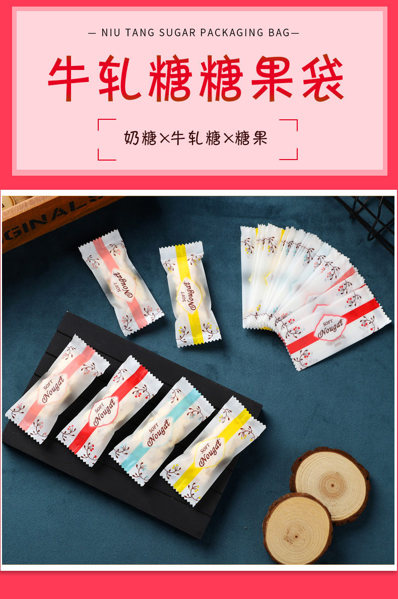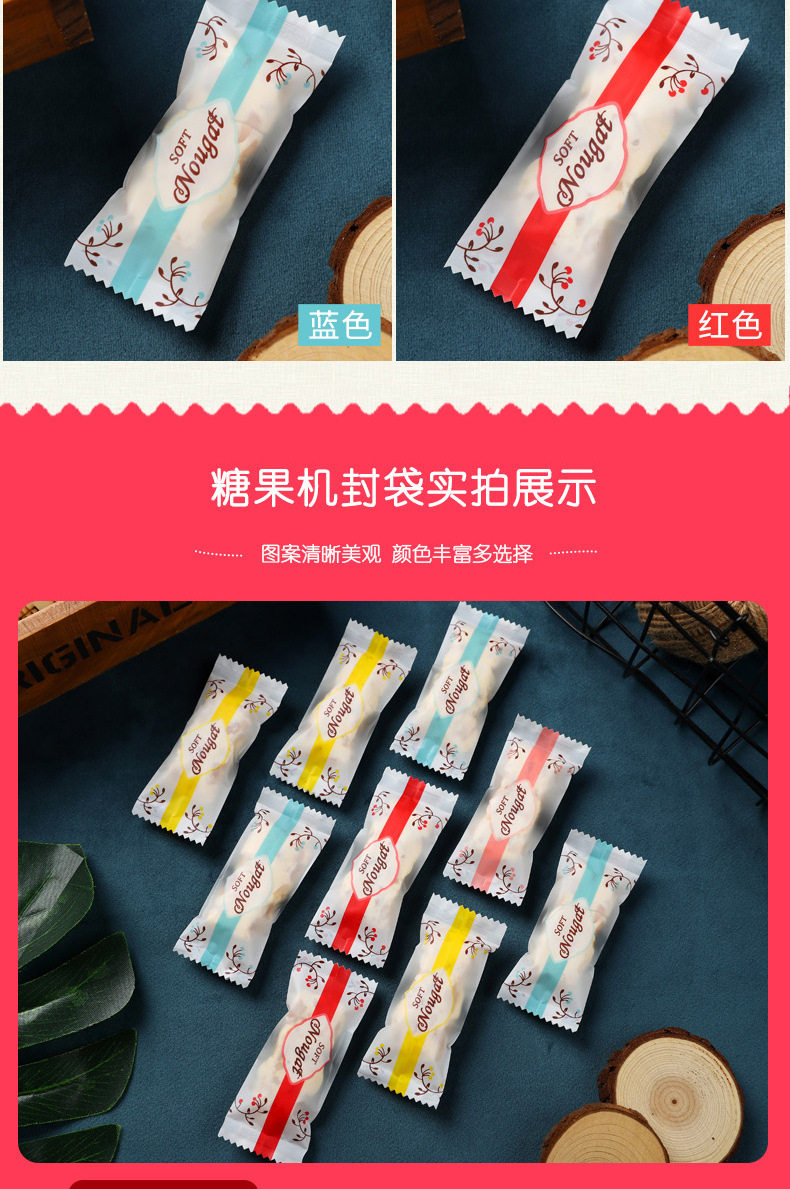 Nougat Packaging Bag Candy Milk Slice Candy Paper Baking Frosted Transparent Machine Sealed Bag Nougat Milk Jujube Packaging Bag
