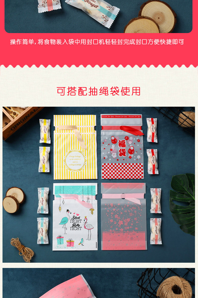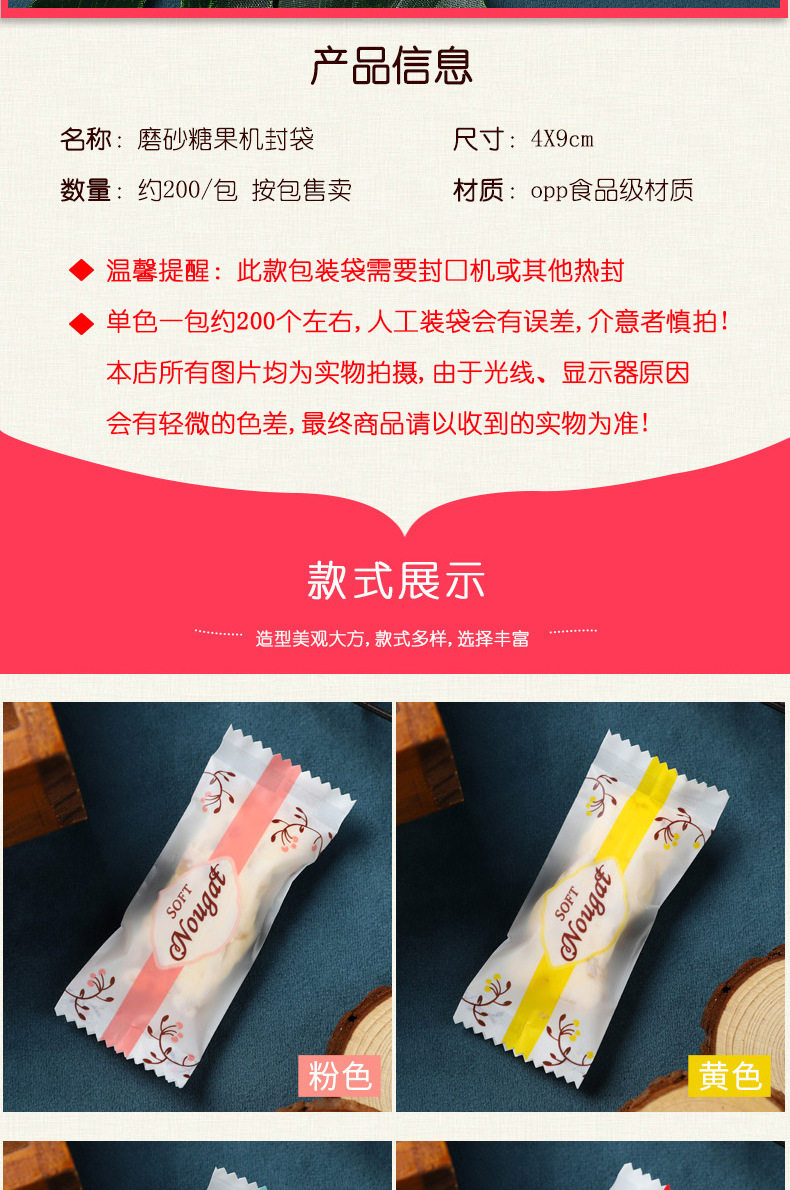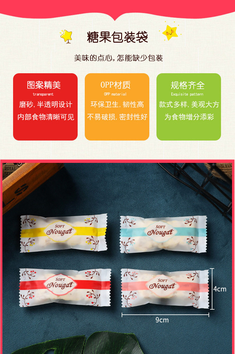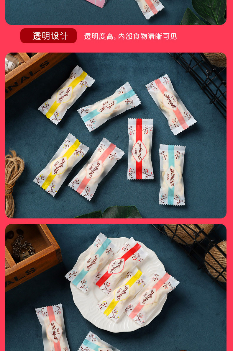 Nougat Packaging Bag Candy Milk Slice Candy Paper Baking Frosted Transparent Machine Sealed Bag Nougat Milk Jujube Packaging Bag