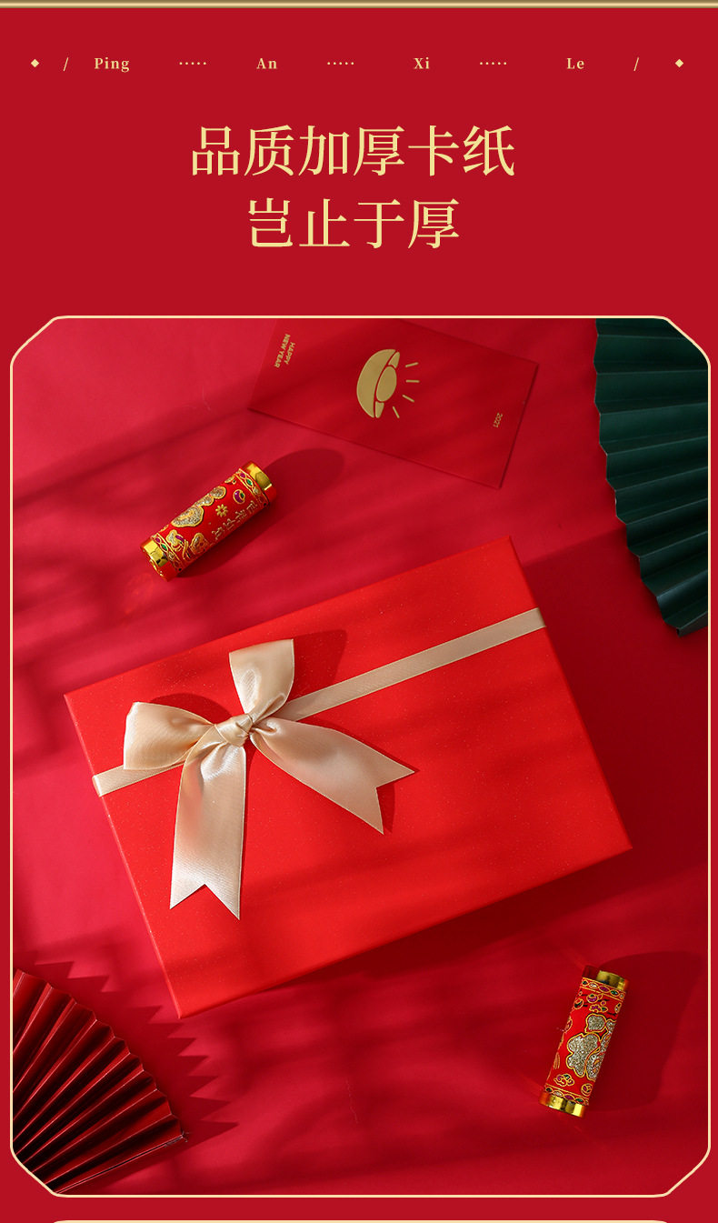 | Specification model | Festive red and gold bow; small gift box 15*15*7cm,Festive red and gold bow; medium gift box 20*18*8cm,Festive red and gold bow; large gift box 28*20*9cm,Festive red and gold bow; extra large gift box 33*25*8cm,Festive red and gold bow; extra large gift box 33*24*11cm,Festive red and gold bow; small gift bag,Festive red and gold bow; medium gift bag,Festive red and gold bow; large gift bag,Festive red and gold bow; extra large gift bag,Festive red and gold bow; oversized gift bag,Festive red and gold bow; beige raffia 20g,Festive red gold bow; red raffia 20g,Festive red and gold bow; gray lucky rabbit,Festive red and green bows; small gift box 15*15*7cm,Festive red and green bows; medium gift box 20*18*8cm,Festive red and green bows; large gift box 28*20*9cm,Festive red and green bows; extra large gift box 33*25*8cm,Festive red and green bows; extra large gift box 33*24*11cm,Festive red and green bows; small gift bag,Festive red and green bow; medium gift bag,Festive red and green bows; large gift bag,Festive red and green bows; extra large gift bag,Festive red and green bows; extra large gift bag,Festive red and green bows; beige raffia 20g,Festive red and green bows; red raffia 20g,Festive red and green bows; gray lucky rabbit,Velvet gold bow; no. 1 11*9*6.5cm,Velvet gold bow; no. 2 13.5*11*7.5cm,Velvet gold bow; no. 3 18*13*9cm,Velvet gold bow; no. 4 21*15*10.5cm,Velvet gold bow; no. 5 23*16*12.5cm,Velvet gold bow; beige raffia 20g,Velvet gold bow; red raffia 20g,Velvet gold bow; gray lucky rabbit,Velvet green bow style; no. 1 11*9*6.5cm,Velvet green bow style; no. 2 13.5*11*7.5cm,Velvet green bow style; no. 3 18*13*9cm,Velvet green bow style; no. 4 21*15*10.5cm,Velvet green bow style; no. 5 23*16*12.5cm,Velvet green bow style; beige raffia 20g,Velvet green bow style; red raffia 20g,Velvet green bow style; gray lucky rabbit,Velvet strap style; no. 1 11*9*6.5cm,Velvet strap model; no. 2 13.5*11*7.5cm,Velvet strap model; no. 3 18*13*9cm,Velvet strap model; no. 4 21*15*10.5cm,Velvet strap style; no. 5 23*16*12.5cm,Velvet strap style; beige raffia 20g,Velvet ribbon tie; red raffia 20g,Velvet strap style; gray lucky rabbit |