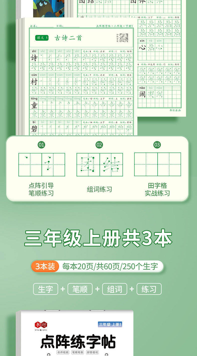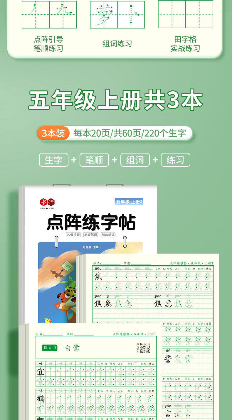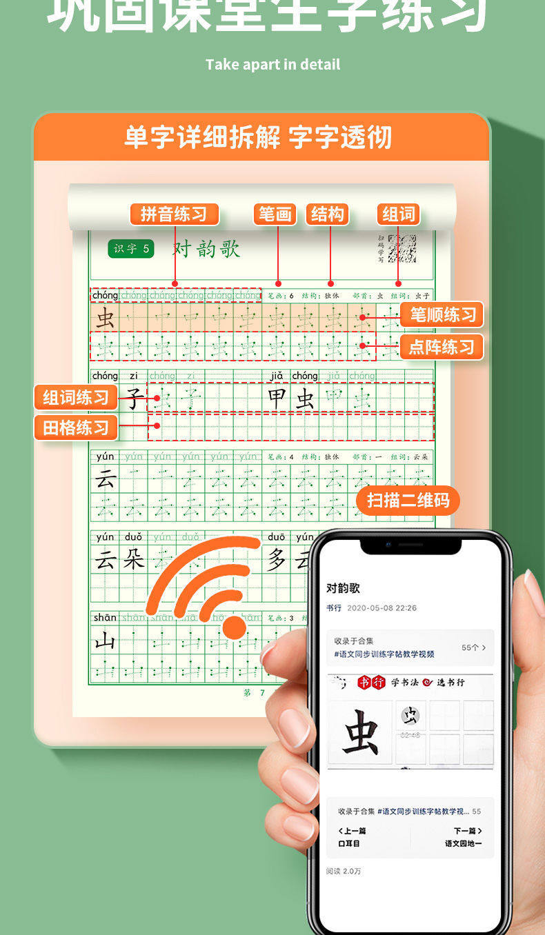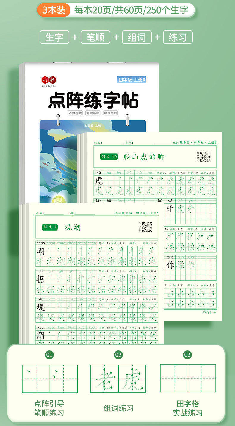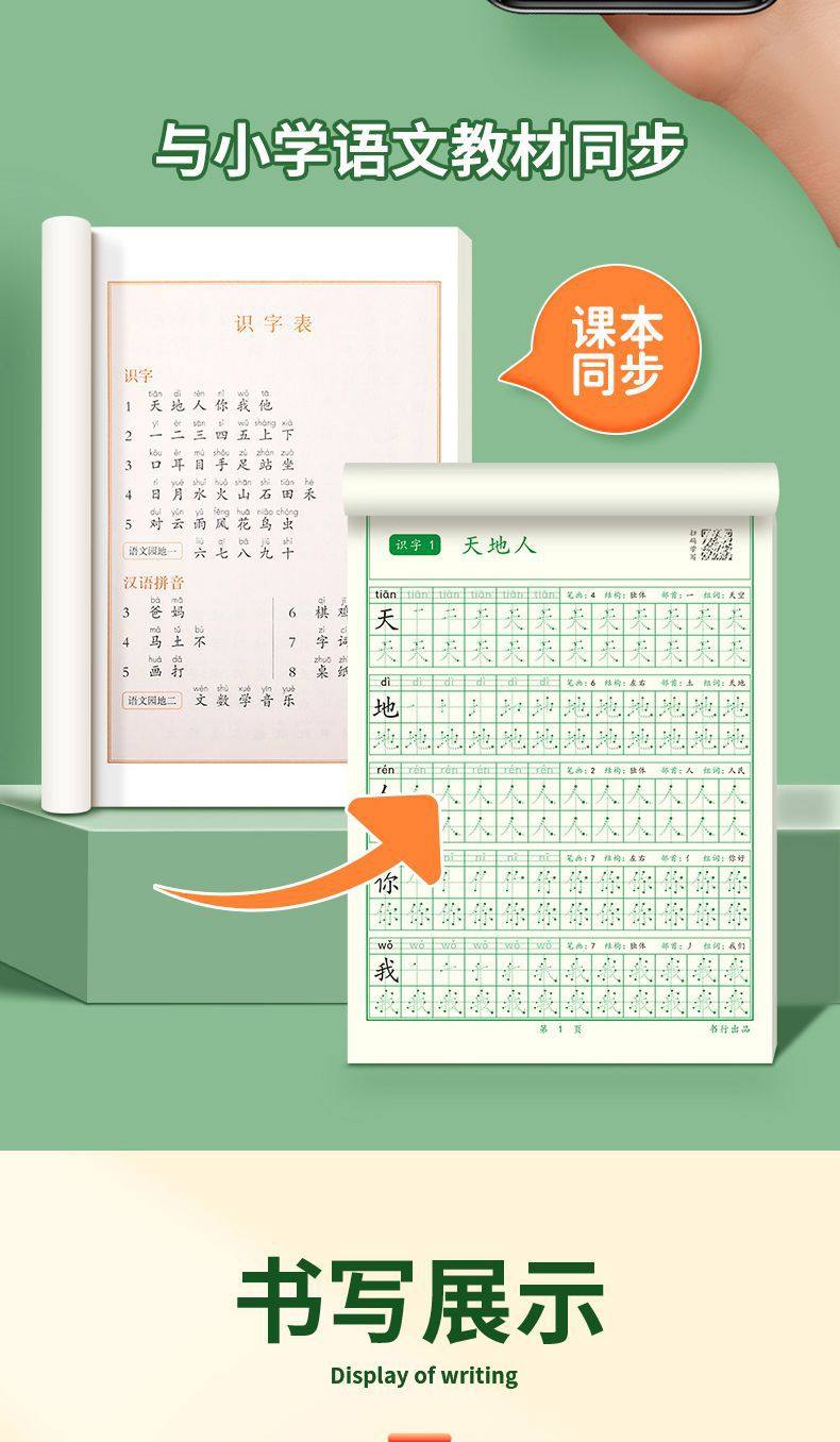 2026 Primary School Grade 1 Copybook with Dot Matrix Font, Synchronized with the People's Education Press Edition of the Chinese Textbook