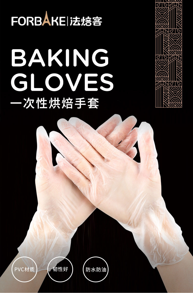 French Bakers Disposable Gloves Food Catering Grade Kitchen Baking Household PVC Plastic Film Gloves for Women 100