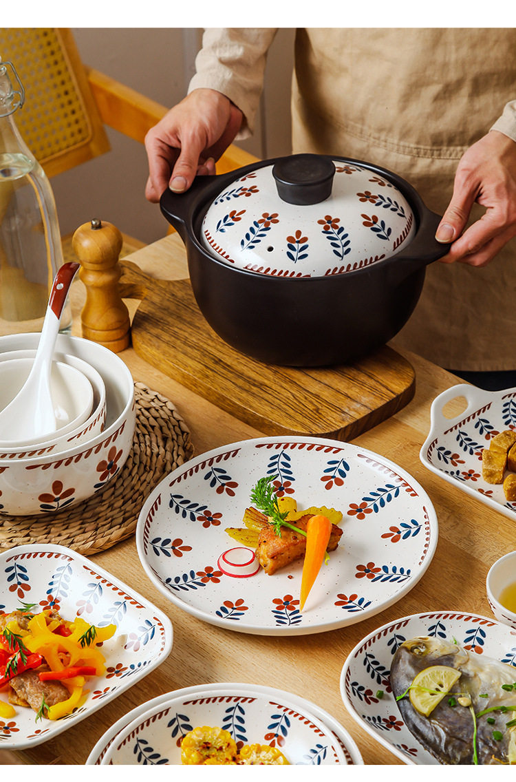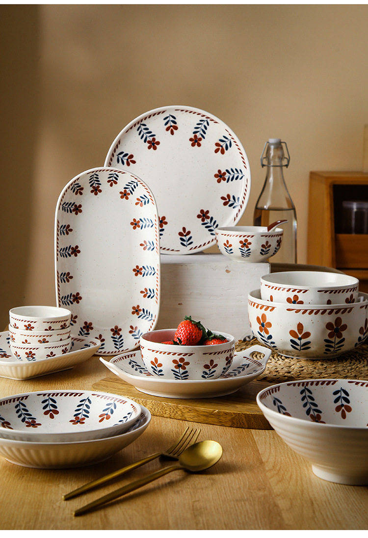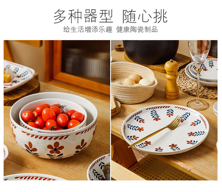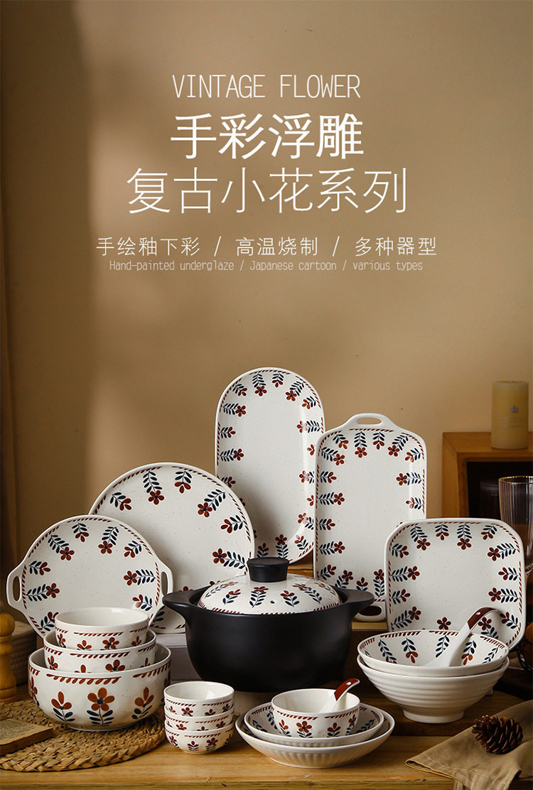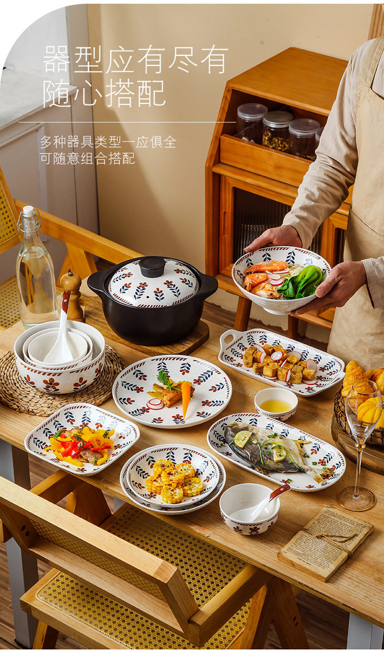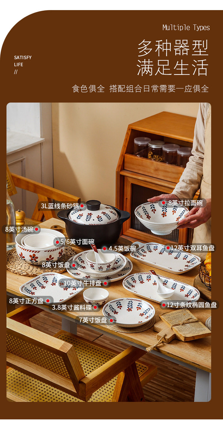 Dishes and Dishes suit Household Japanese-style Ceramic Dishes and Dishes Retro Creative Internet-famous Dishes and Chopsticks Light Luxury Tableware Combination for Housewarming Gifts