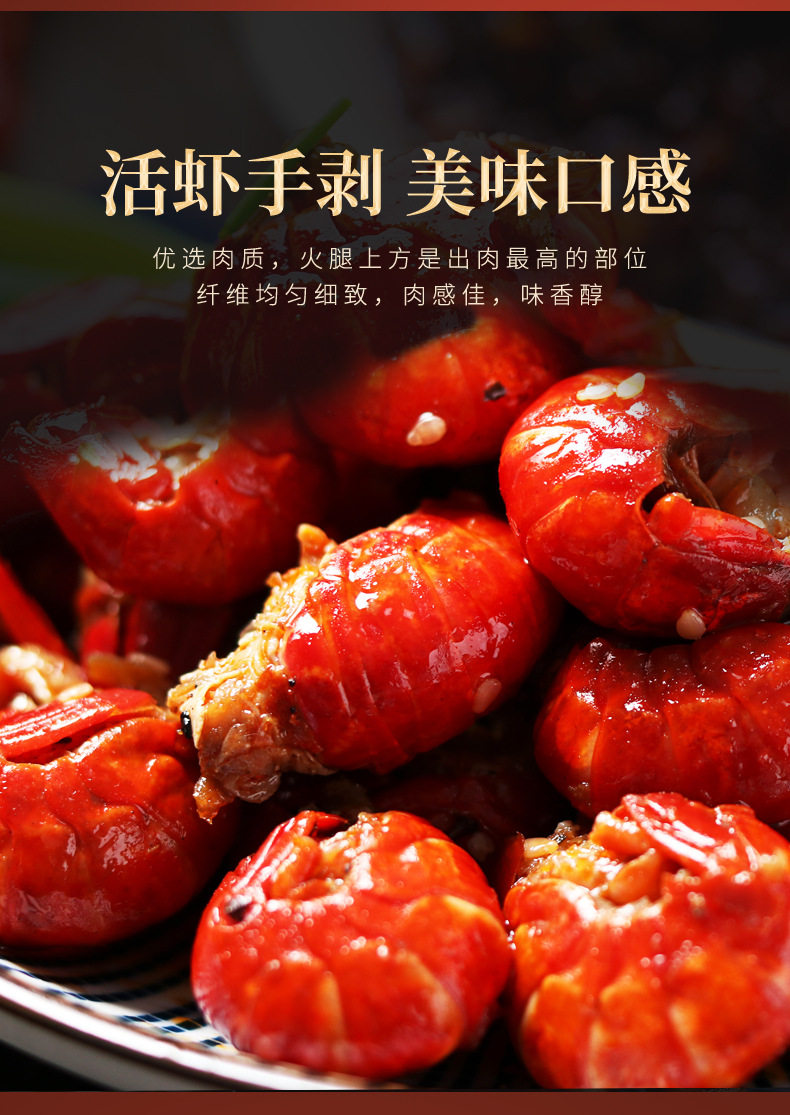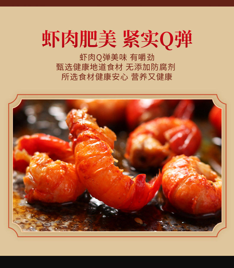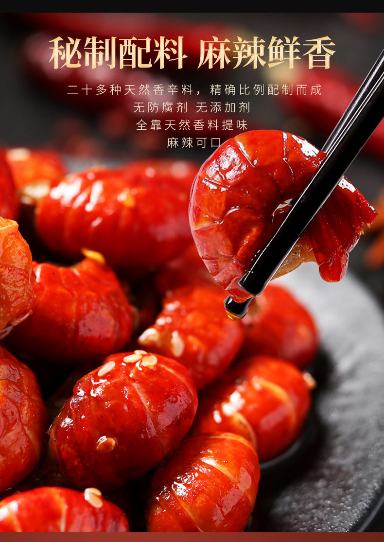 | Raw materials and ingredients | Shrimp tail, soybean oil, chili pepper, white sugar, spices, strong-flavor chicken seasoning, sichuan peppercorn oil (rapeseed oil, corn oil, sichuan peppercorns), msg, edible salt, flavoring |