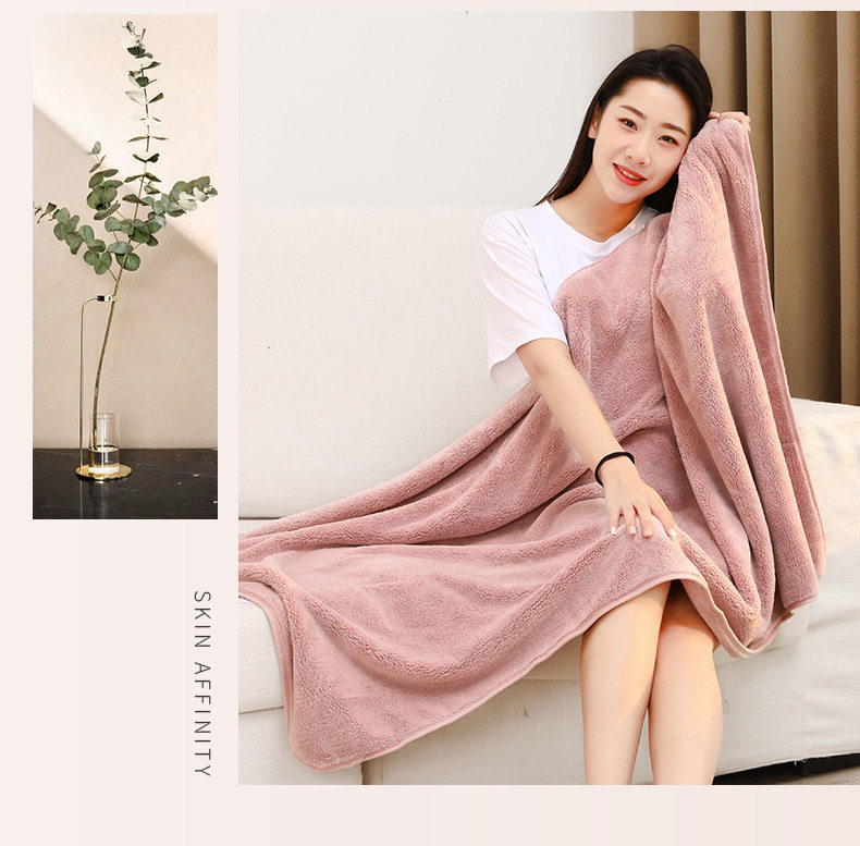 Wholesale Spring New Couple Coral Fleece Large Bath Towel Solid Color Men's and Women's Household Absorbent Office Shawl Nap Blanket