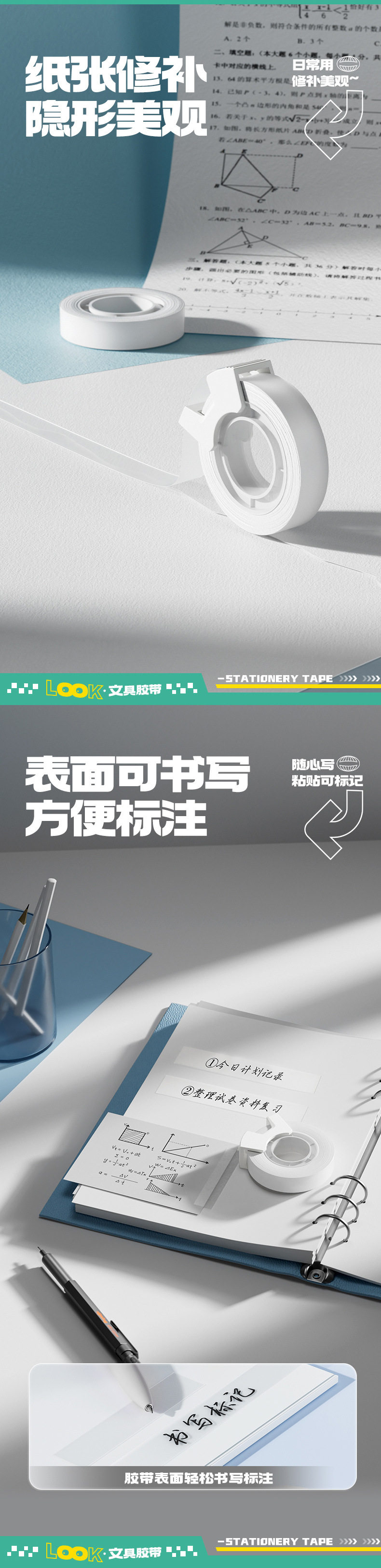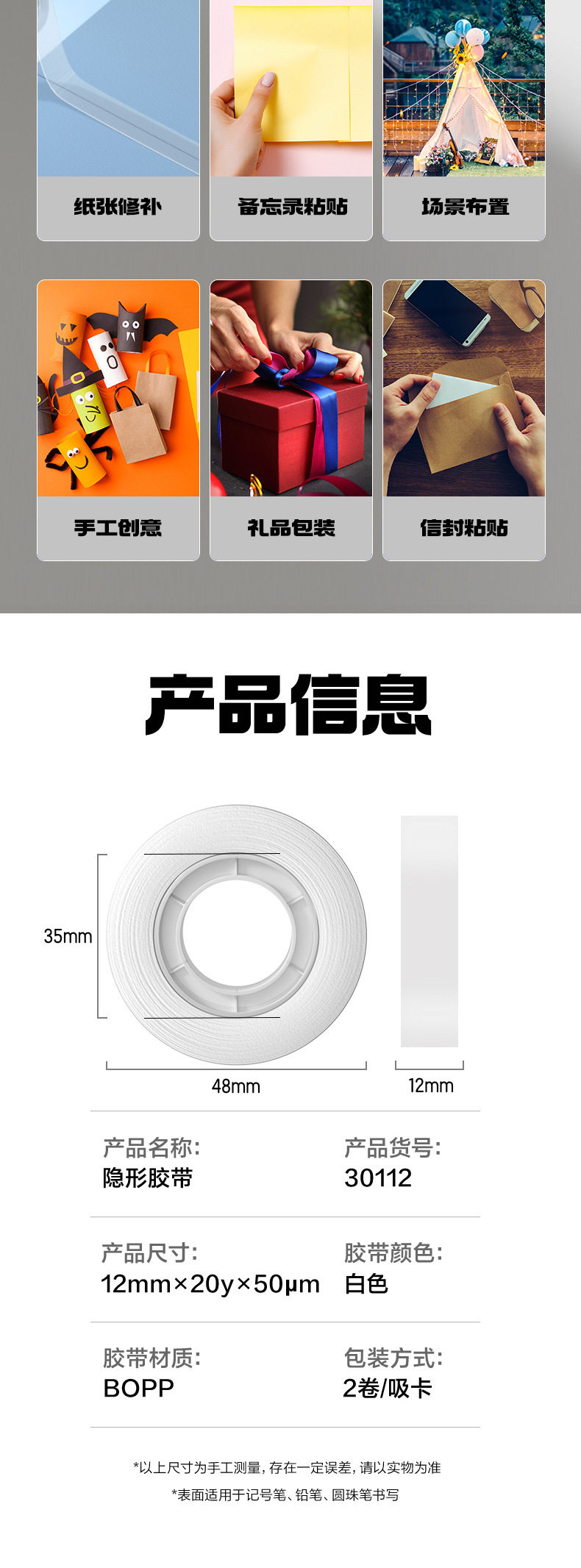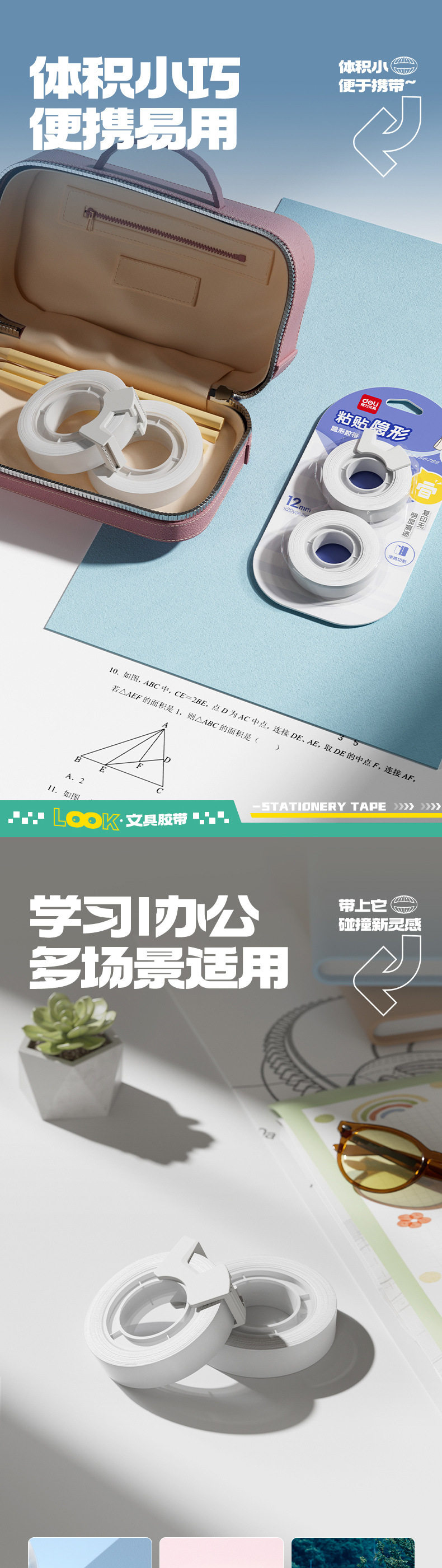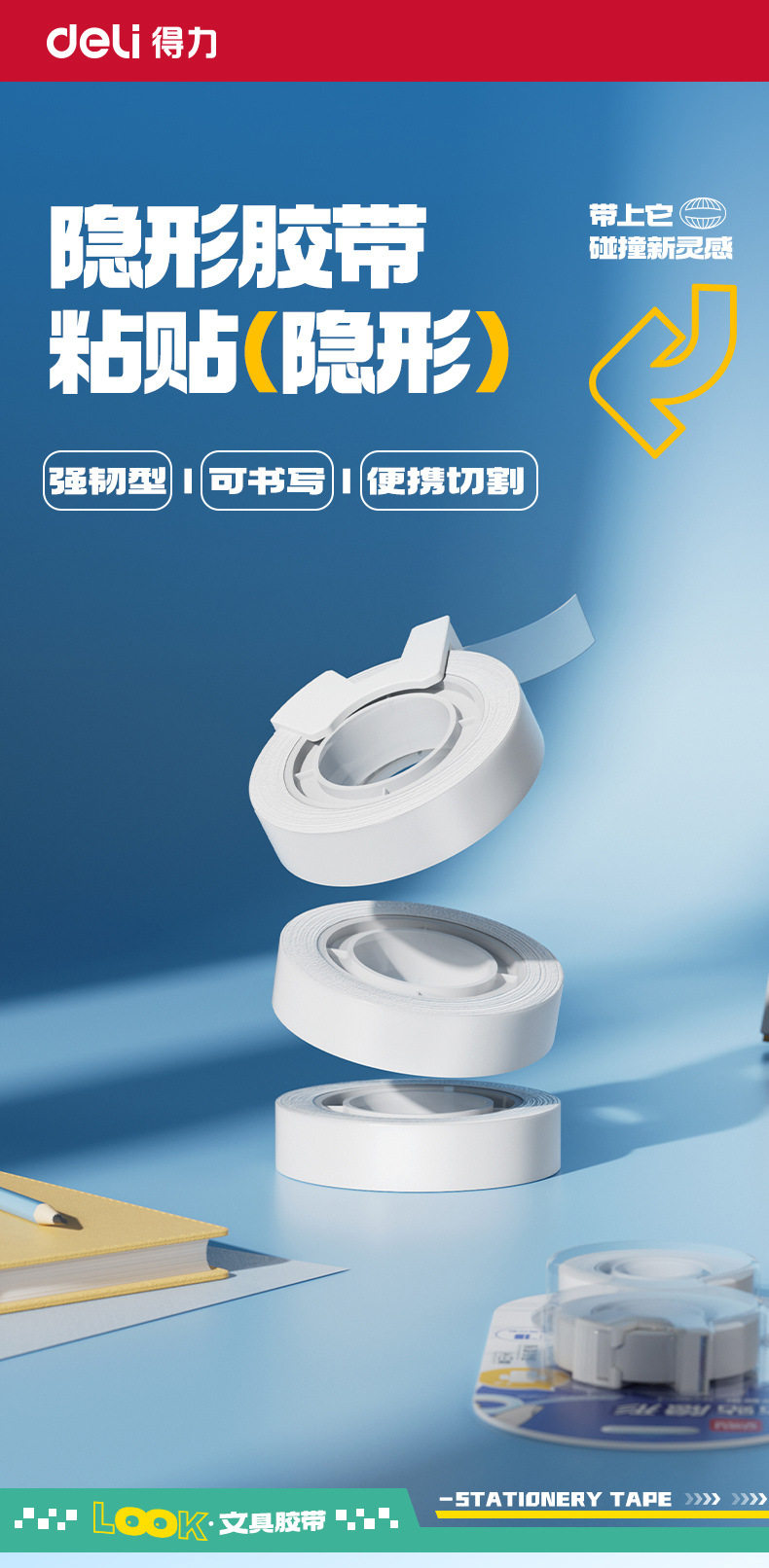Deli 30112 Invisible Adhesive Bandwidth Copy and Paste Student Wrong Topic Sticky Topic Stationery Tape Cutter Single Card Volume 2