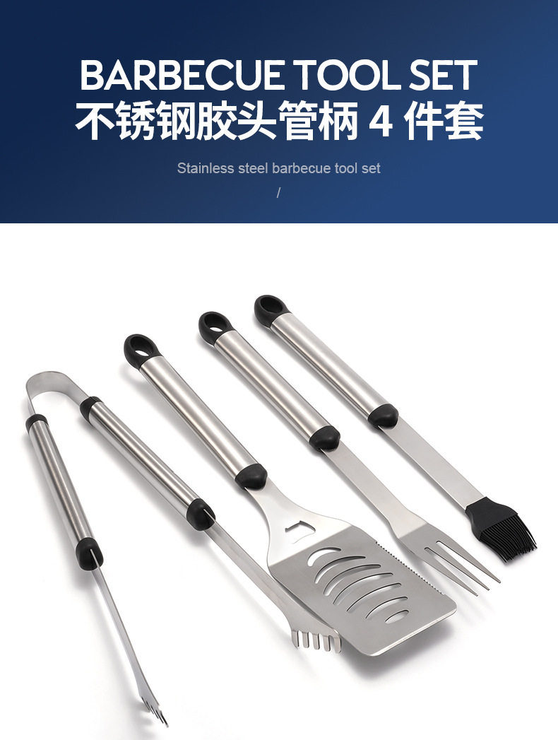Bbq Outdoor Barbecue Combination Set with Rubber Handle Stainless Steel Grill Tools 4-Piece Set for Home Outdoor Excursions American Style