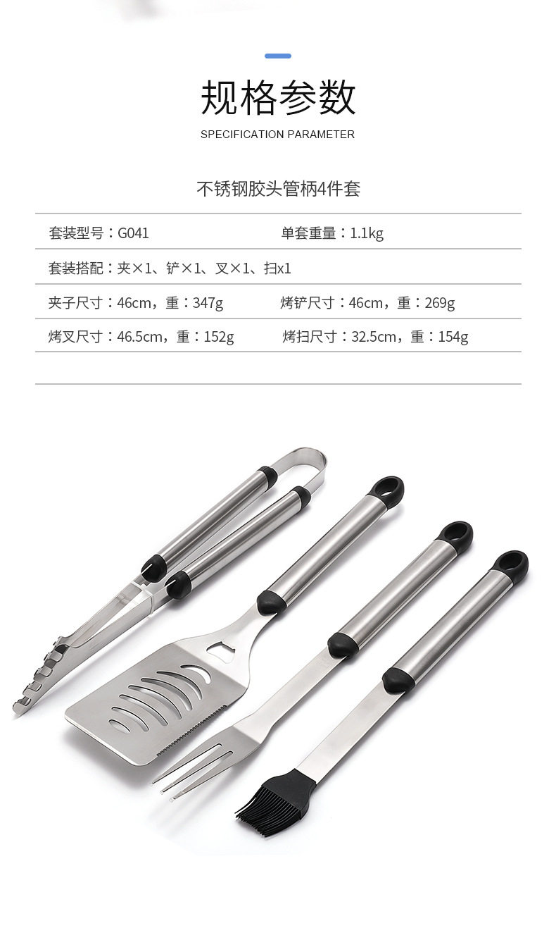 | Specifications | G041 Grill Clamp with Rubber Head and Handle,G041 Barbecue spatula with rubber head handle,G041 Barbecue fork with rubber head handle,G041 Grill Oil Sweep with Rubber Head Handle |