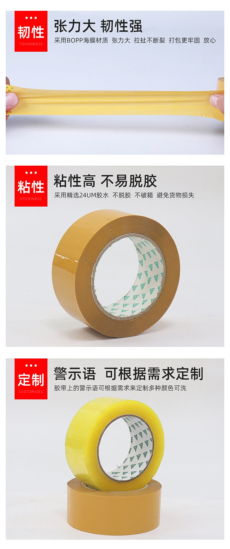 | Specifications and models | 45mm*100m; transparent sealing tape,45mm*100m; beige sealing tape,48mm*100m; transparent sealing tape,48mm*100m; beige sealing tape,50mm*100m; transparent sealing tape,50mm*100m; beige sealing tape,60mm*100m; transparent sealing tape,60mm*100m; beige sealing tape |