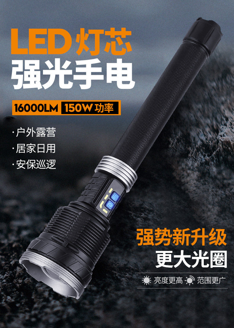 New P360 Rechargeable Long-Range Outdoor Xenon Lamp with High Power and Long Battery Life 15000 Lumens Aluminum Alloy Flashlight