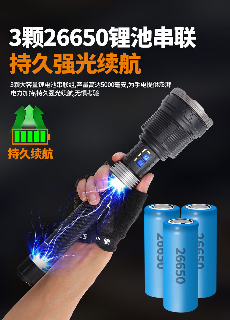 | Color | COB floodlight model without battery,P360 long-range model without battery,COB floodlight (with 3 26650 power batteries),P360 long-range model (with 3 26650 power battery) |