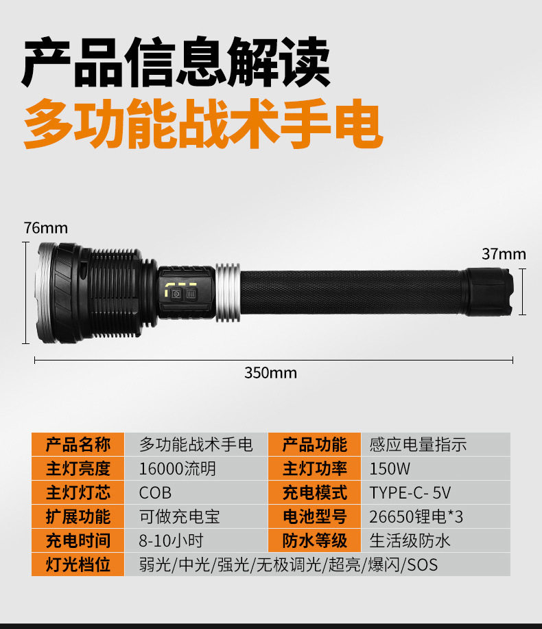 | Applicable environment | Hiking,Camping,Self-Defense,Teaching,Search,Daily carry,Caves,Night fishing,Patrol |