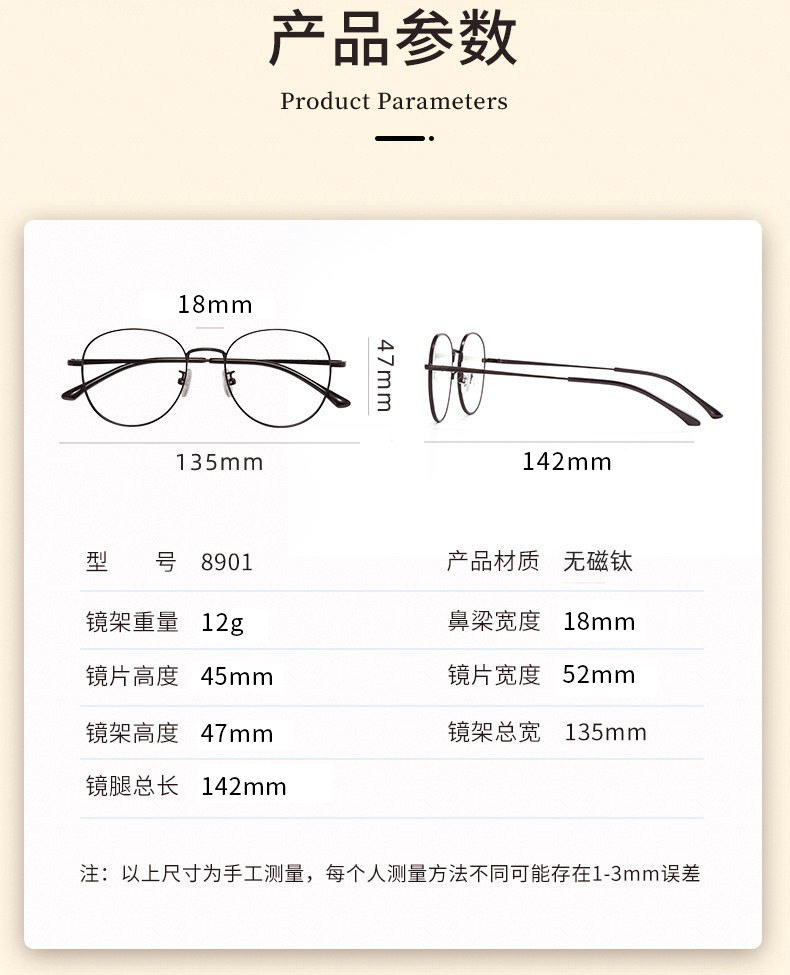 Retro ultra light Danyang glasses frame men's 8901 thin frame plain close-up mirror wholesale titanium frame round frame glasses frame women