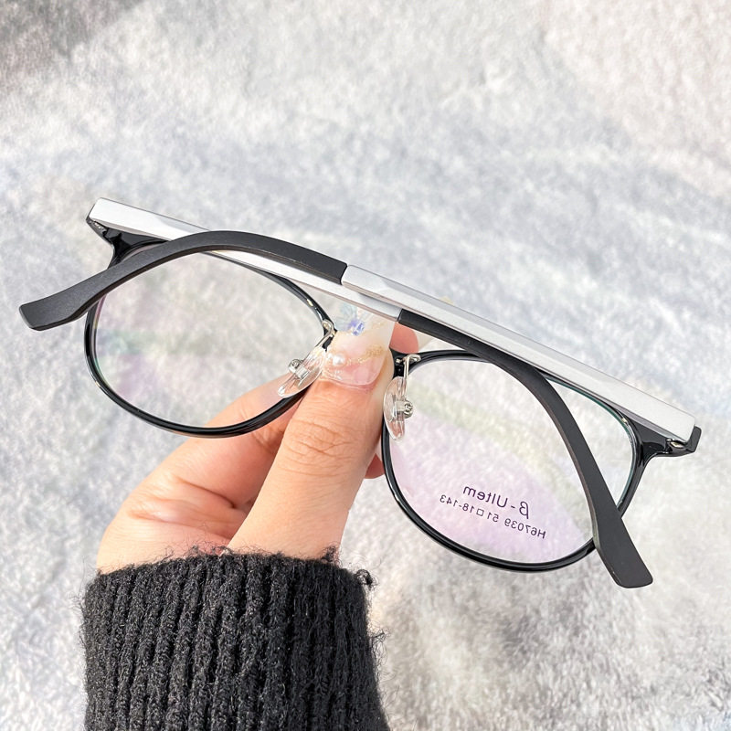 Korean Style Tungsten Carbon Plastic Steel Glasses Frame Women's Ultra Light Oval Frame Glasses Men's Artistic Fashion Optical Frame with Nose Pad Trendy