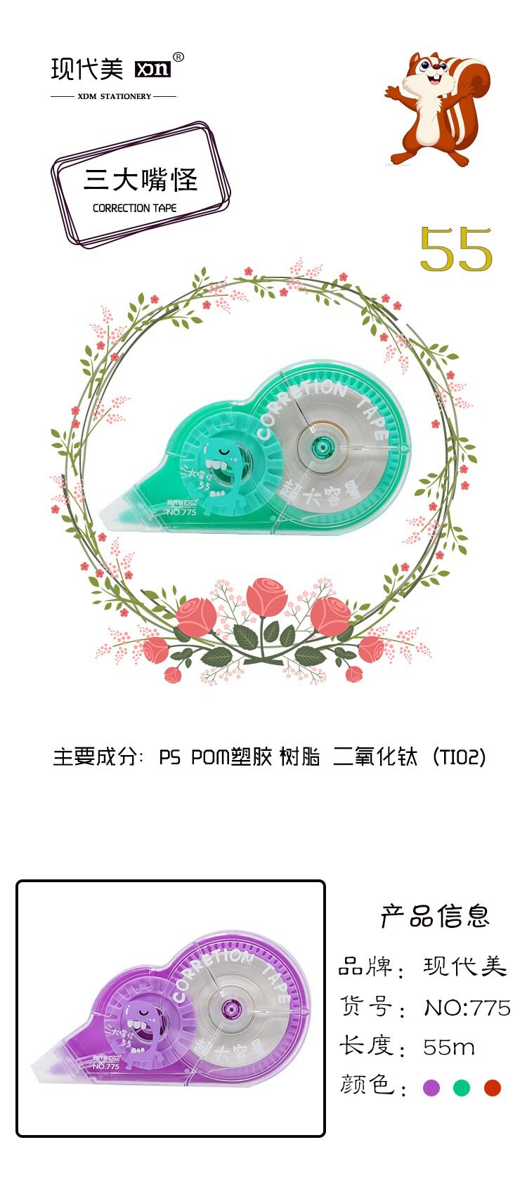 Modern beauty 775 cartoon 55 m correction tape genuine super large correction tape for students with cute creative modification tape