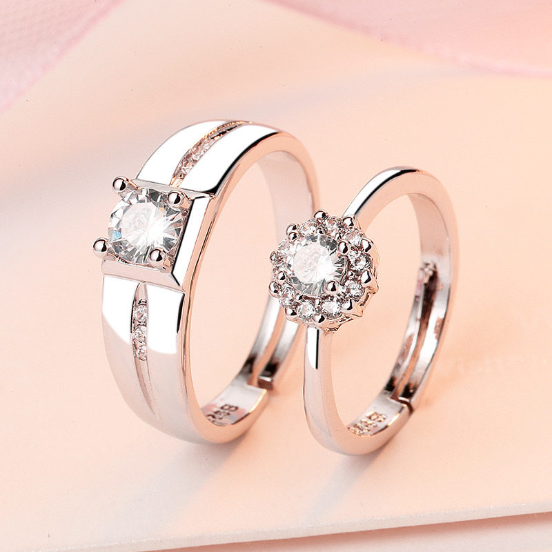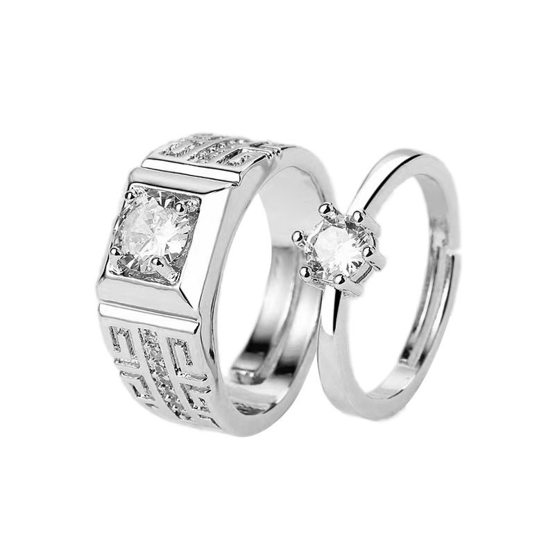 Couple ring Korean version of simple ring simulation diamond ring opening zircon classic ring couple wedding ring a generation of hair