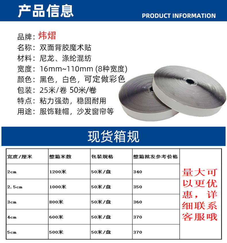 | Specifications and models | White 2cm wide hook surface,White 2cm wide wool surface,White 2cm wide hook surface + wool surface,White 2.5cm wide hook surface,White 2.5cm wide wool surface,White 2.5cm wide hook surface + wool surface,White 3cm wide hook surface,White 3cm wide wool surface,White 3cm wide hook surface + wool surface,White 4cm wide hook surface,White 4cm wide wool surface,White 4cm wide hook surface + wool surface,White 5cm wide hook surface,White 5cm wide wool surface,White 5cm wide hook surface + wool surface,Black 2cm wide hook surface,Black 2cm wide wool surface,Black 2cm wide hook surface + wool surface,Black 2.5cm wide hook surface,Black 2.5cm wide wool surface,Black 2.5cm wide hook surface + wool surface,Black 3cm wide hook surface,Black 3cm wide wool surface,Black 3cm wide hook surface + wool surface,Black 4cm wide hook surface,Black 4cm wide wool surface,Black 4cm wide hook surface + wool surface,Black 5cm wide hook surface,Black 5cm wide wool surface,Black 5cm wide hook surface + wool surface |