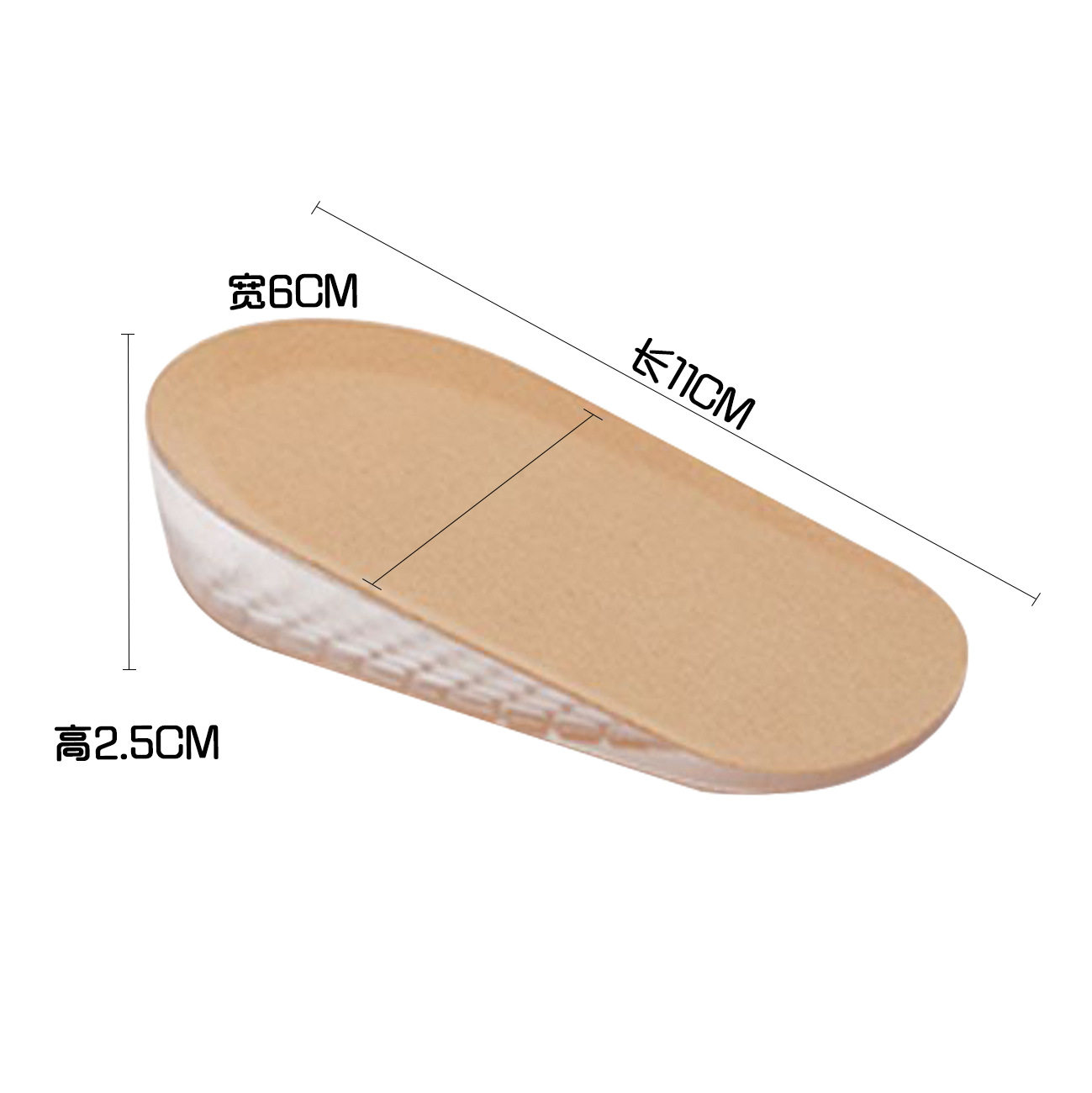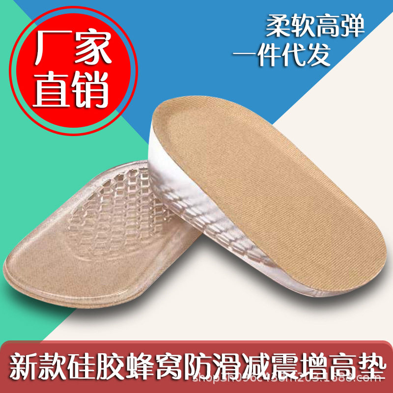 Source factory invisible inner heightening insole socks wear silicone heel half pad soft and comfortable hidden heightening artifact