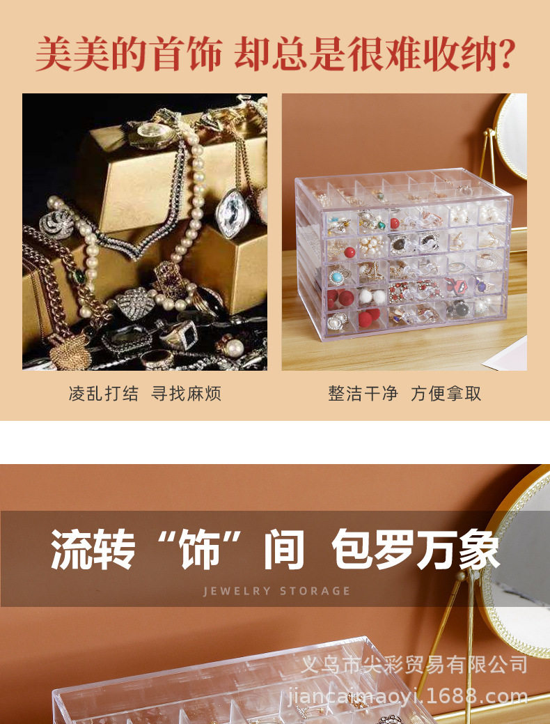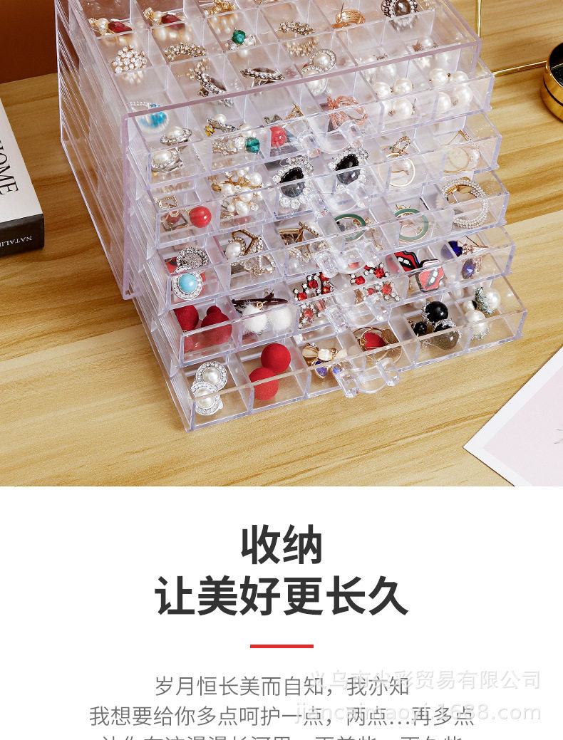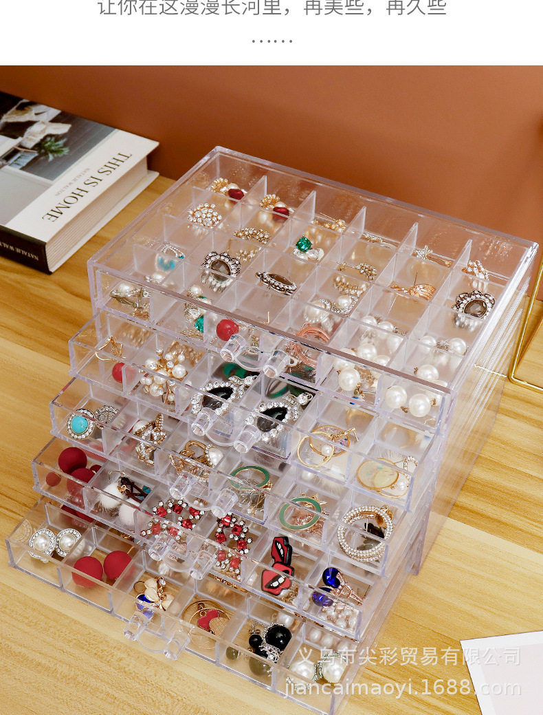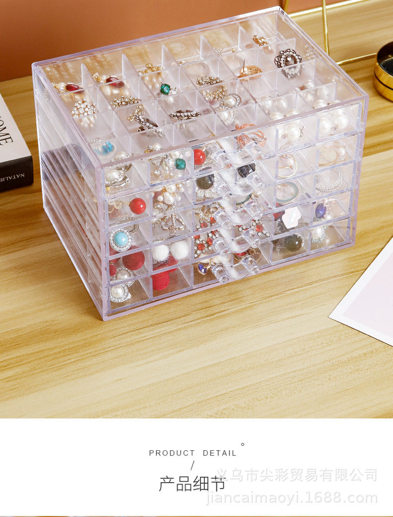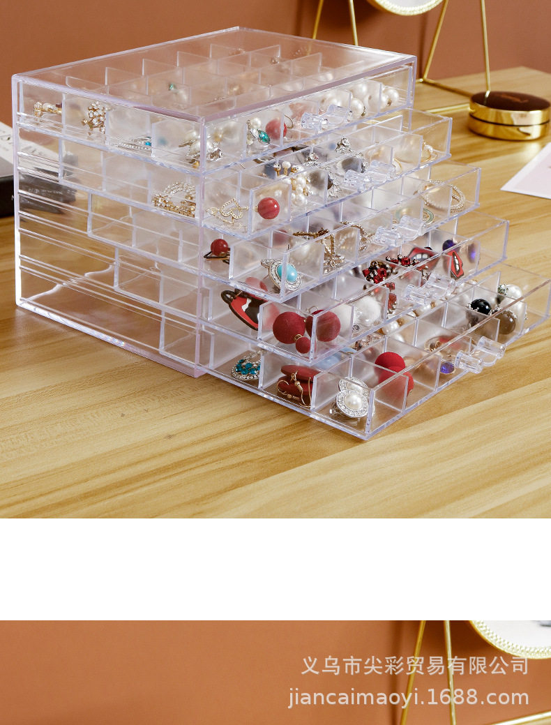 Cross-Border New Product Transparent Jewelry Storage Box Ins Style Large Capacity Household Organizing Box Earrings Necklace Dustproof Drawer