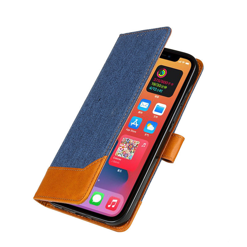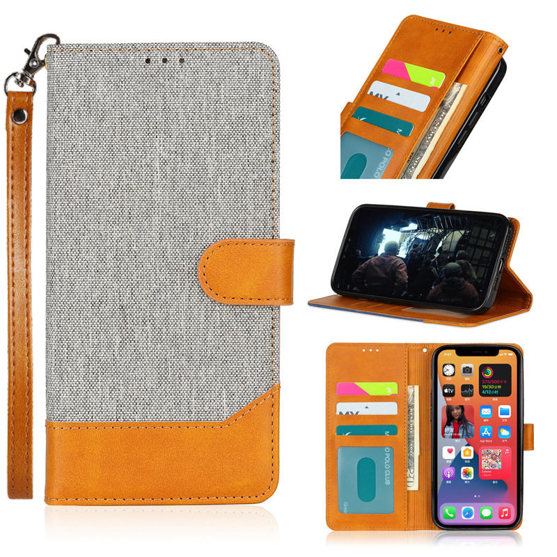 Suitable for Iphone13 Mobile Phone Case Contrasting Canvas 11 Flip Cover Apple 14Pro Magnetic Card Tpu Mobile Phone Leather Case