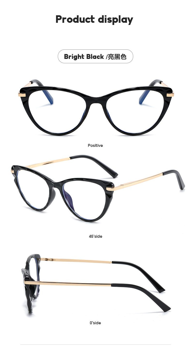 Jite 5065Tr90 Metal Glasses Frame Export Cat Eye Flat Mirror European and American Diamond Edge-Cut Anti-Blue Light Glasses