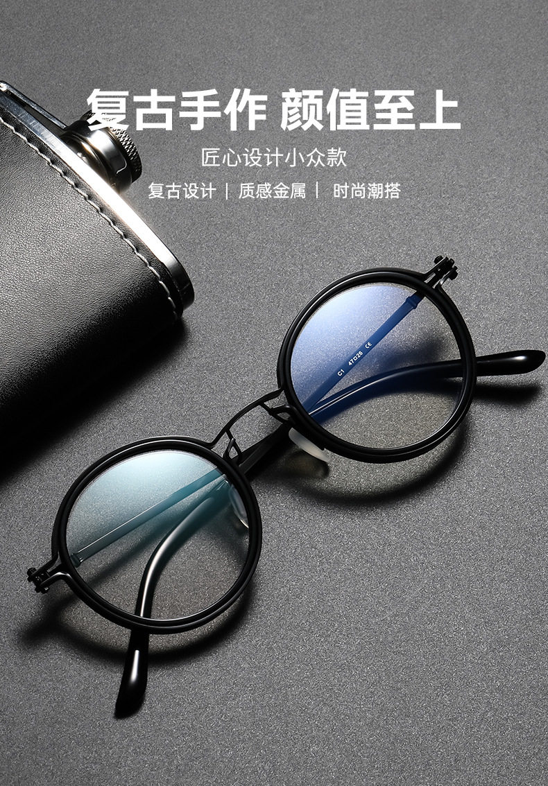 Net red hot selling glasses frame men's business retro round flat lens can be equipped with myopia glasses frame wholesale