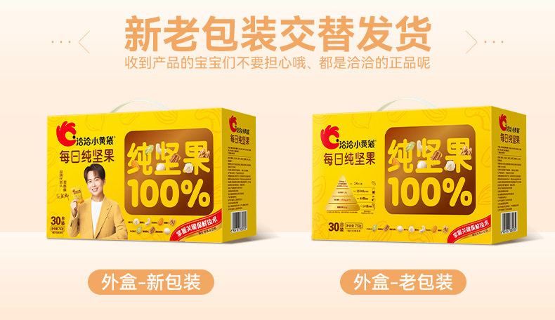 | Packaging specifications | Little yellow bag daily nuts 750g [30-day pack],Small yellow bag of pure nuts 750g [30-day pack] |
