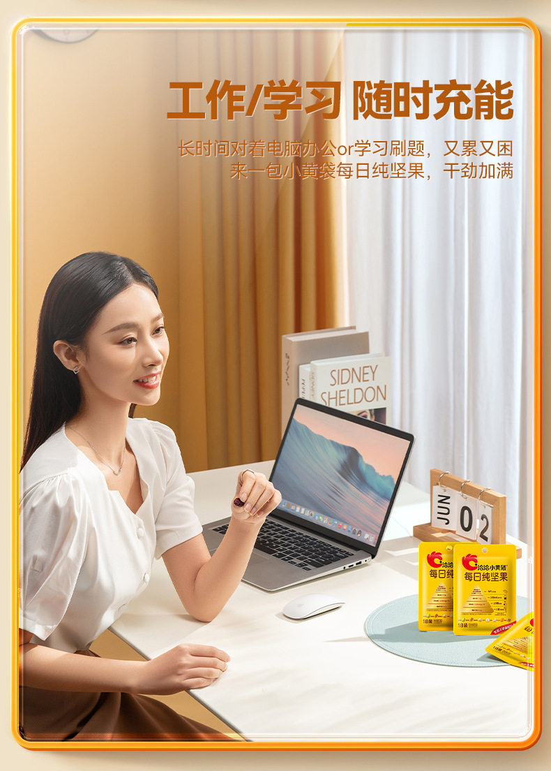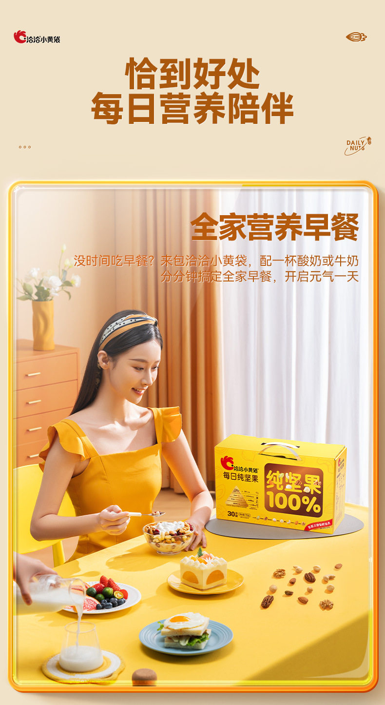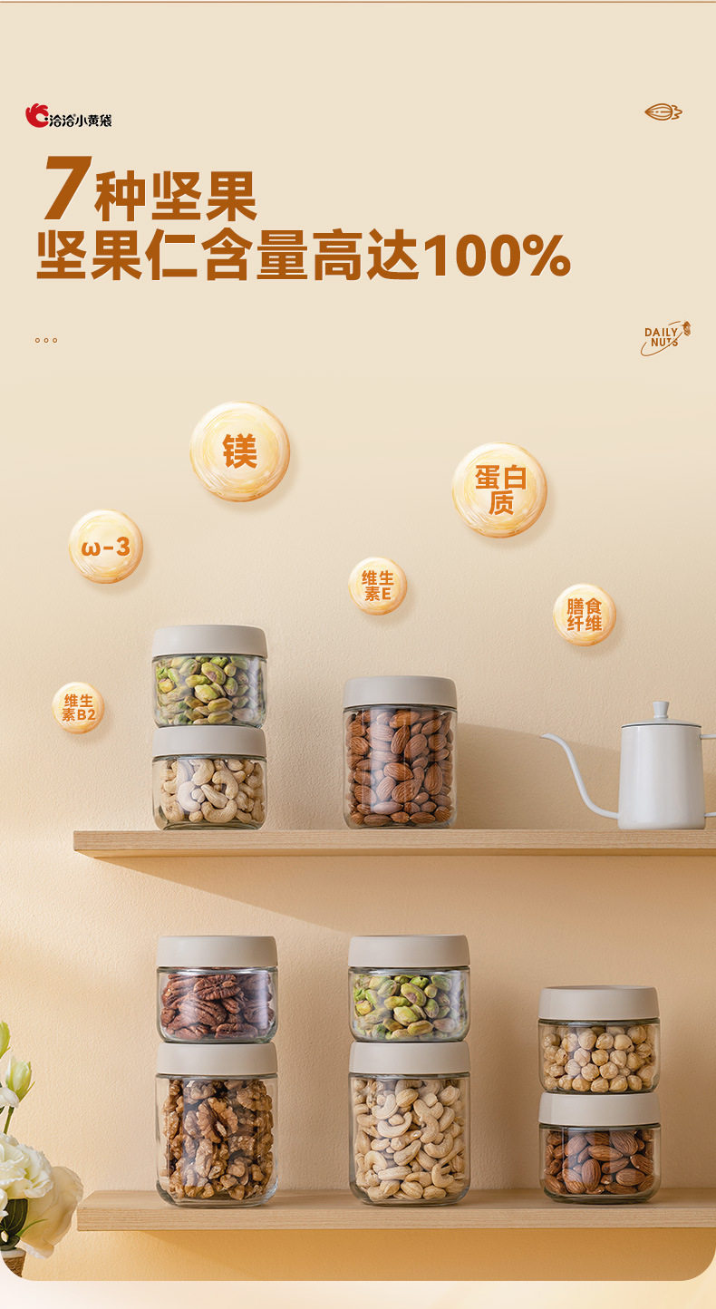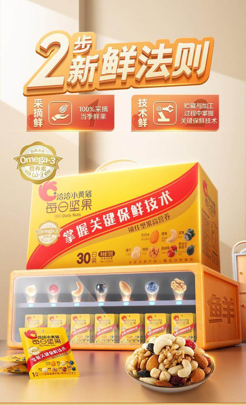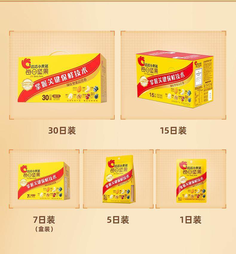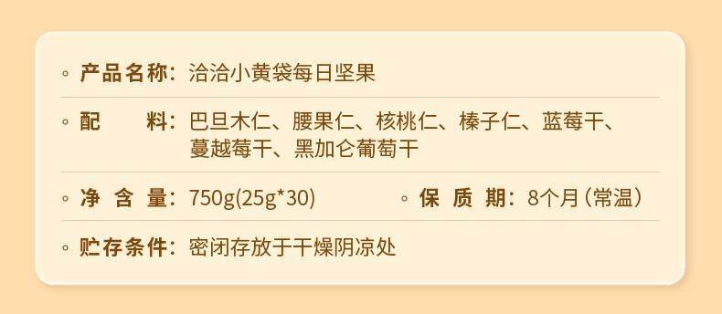 | Packaging specifications | Little yellow bag daily nuts 750g [30-day pack],Small yellow bag of pure nuts 750g [30-day pack] |