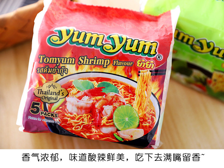 Thai Imported Instant Noodles with Tom Yum Flavor, Instant Noodles with Shrimp Flavor, 5-Pack, Thai Style