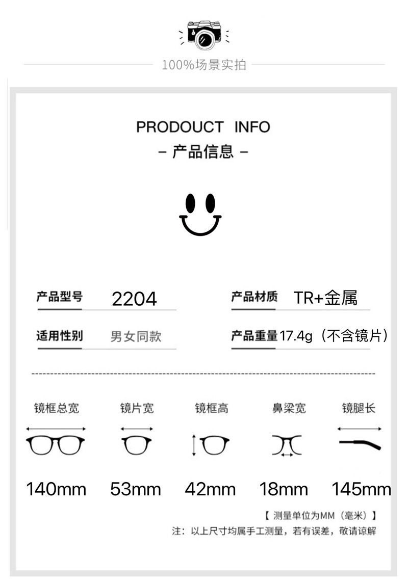 | Frame color | Bright black gold frame C1,Bright Black silver frame C1,Transparent gold frame C3,Gray silver frame C4,Transparent silver frame C3,Sand black silver frame C2,Bright black gun frame c1 |