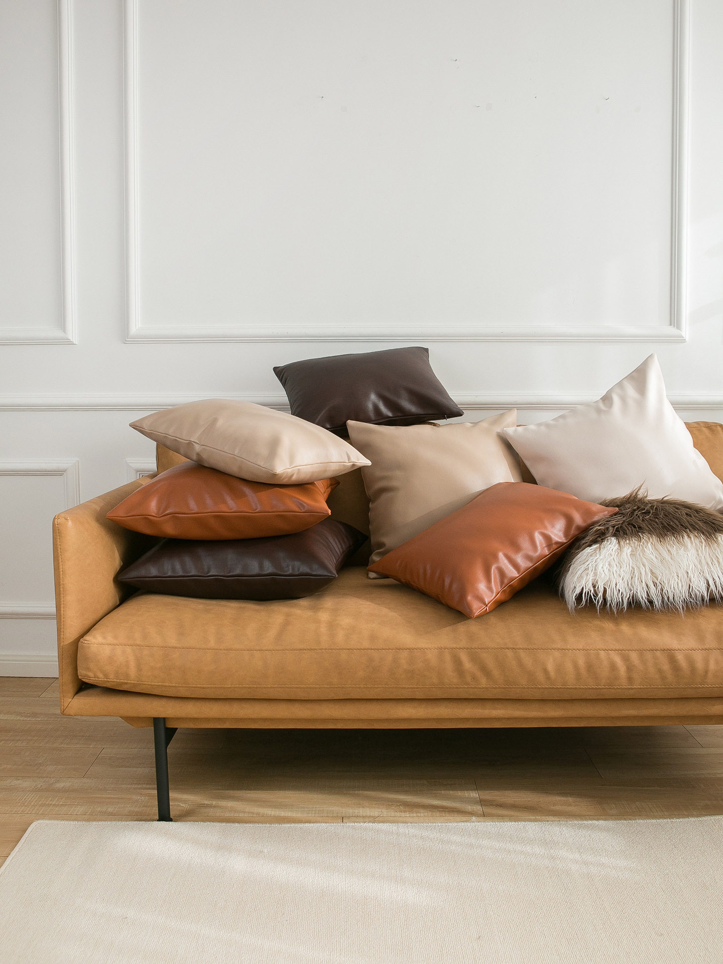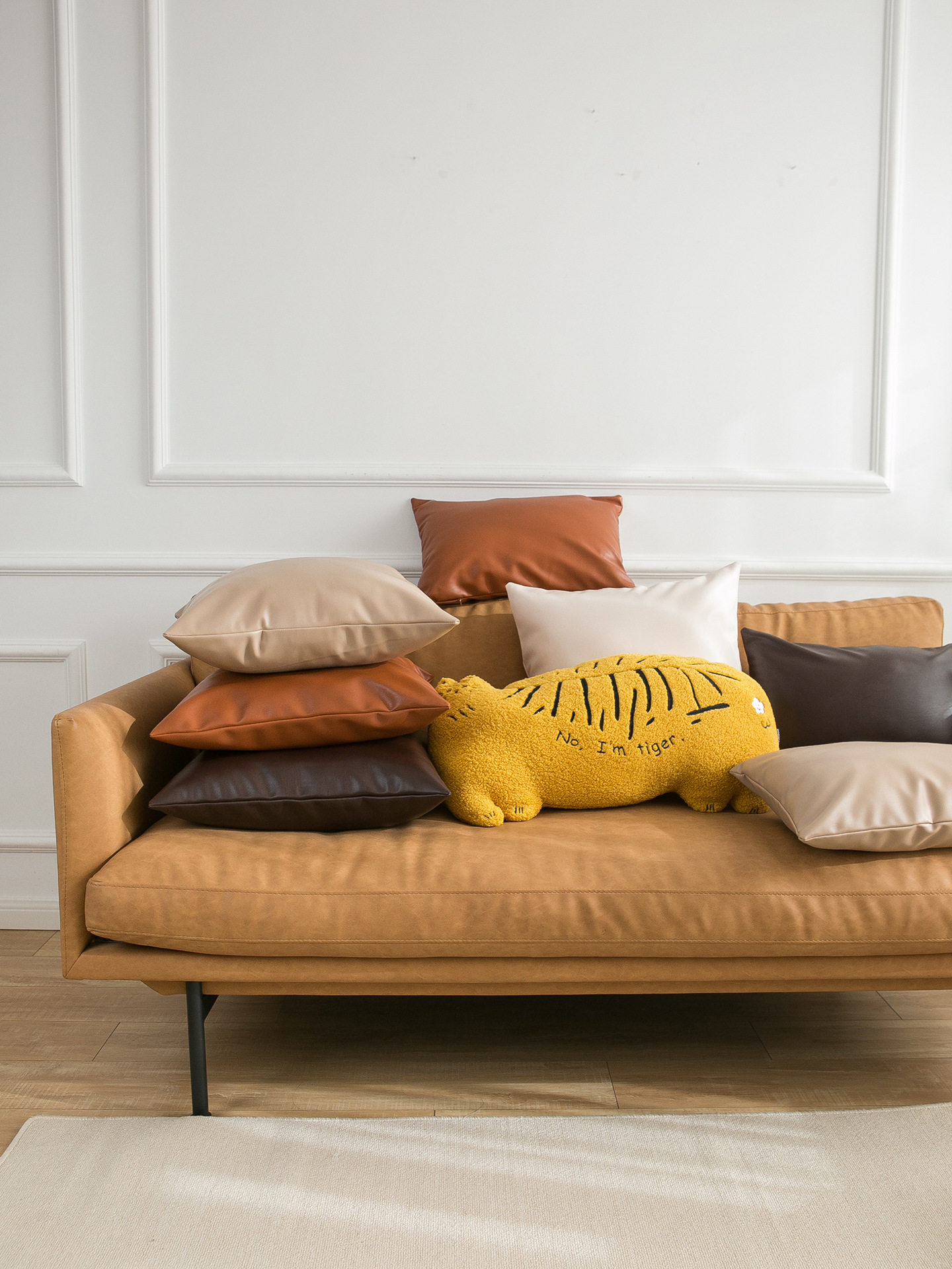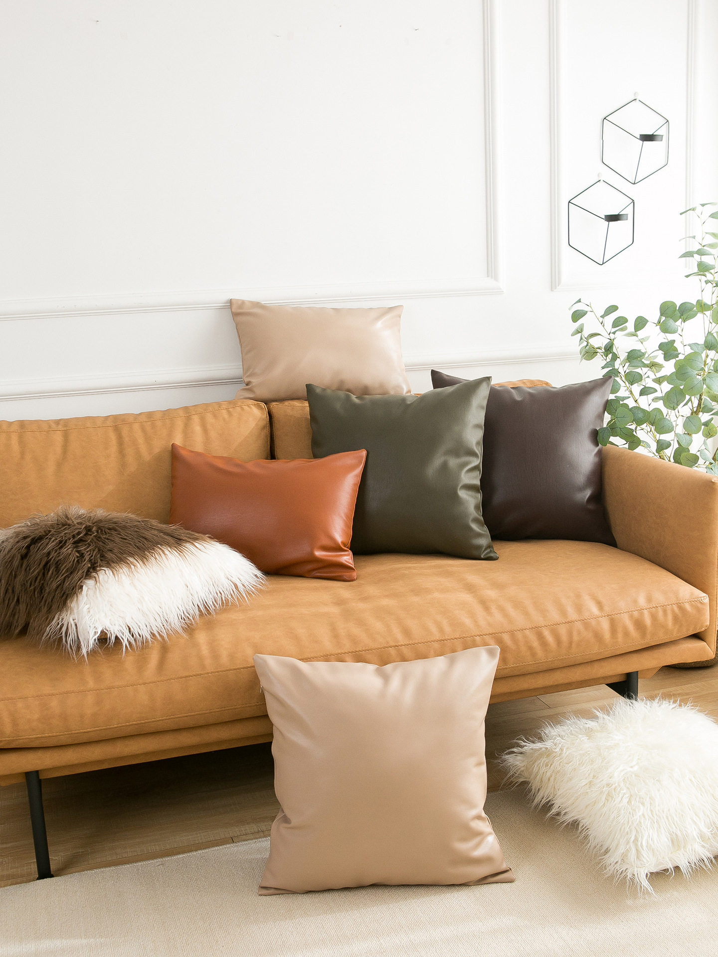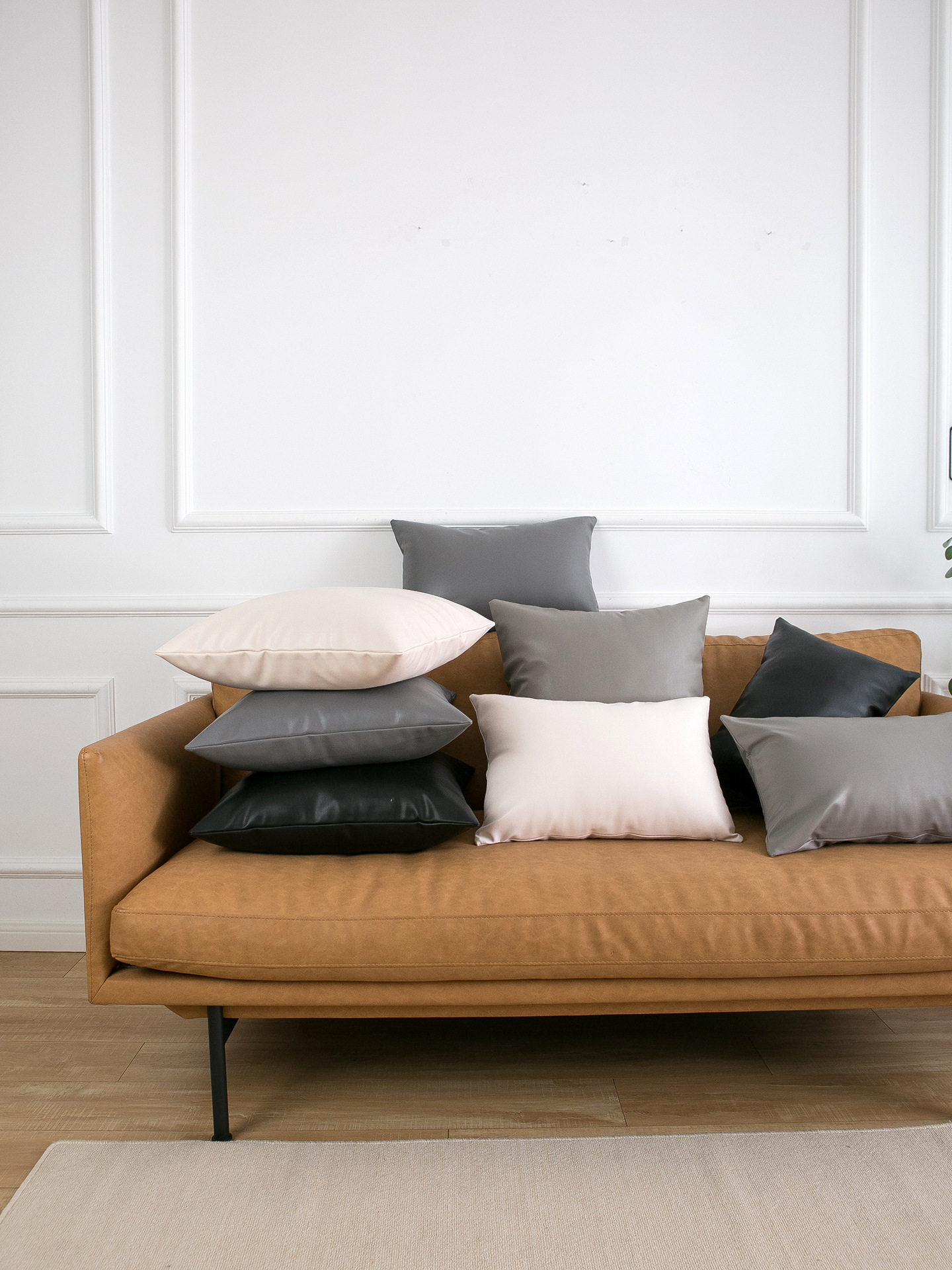 Soft Imitation Cowhide Accessible Luxury Pillow Case with Leather Texture Waist Pillow Living Room Sofa Technology Cloth Cushion Simulated Leather Pillow