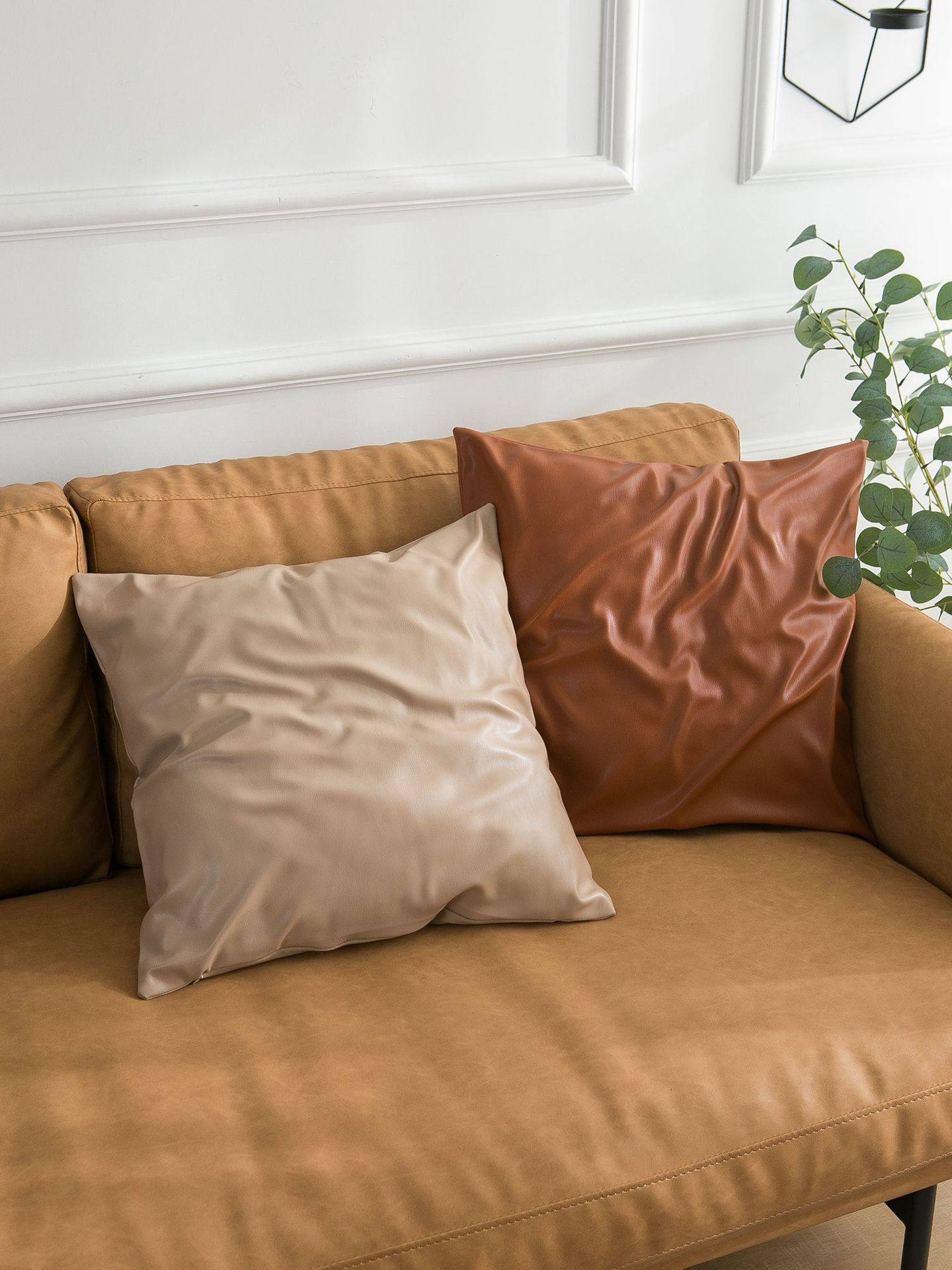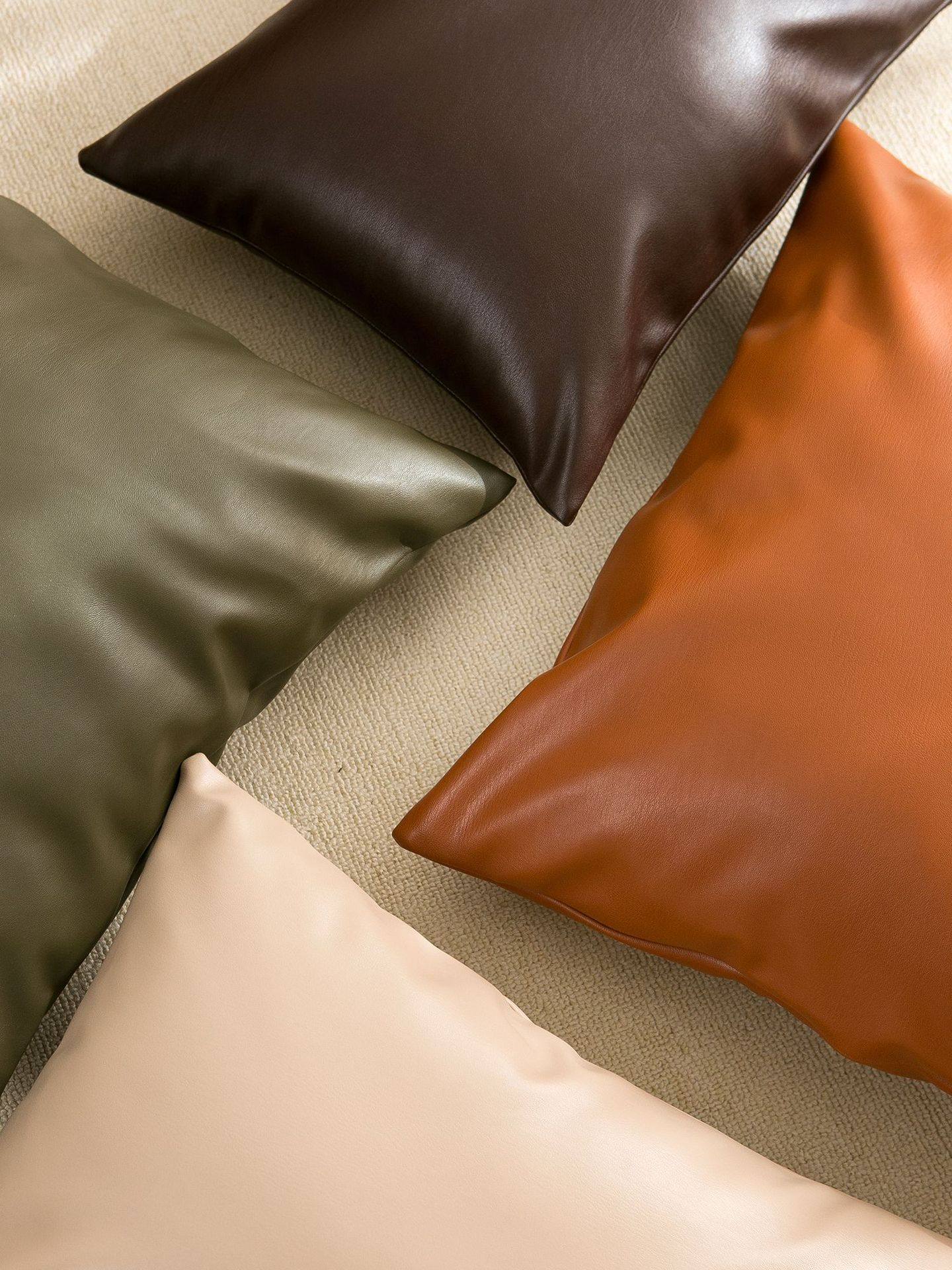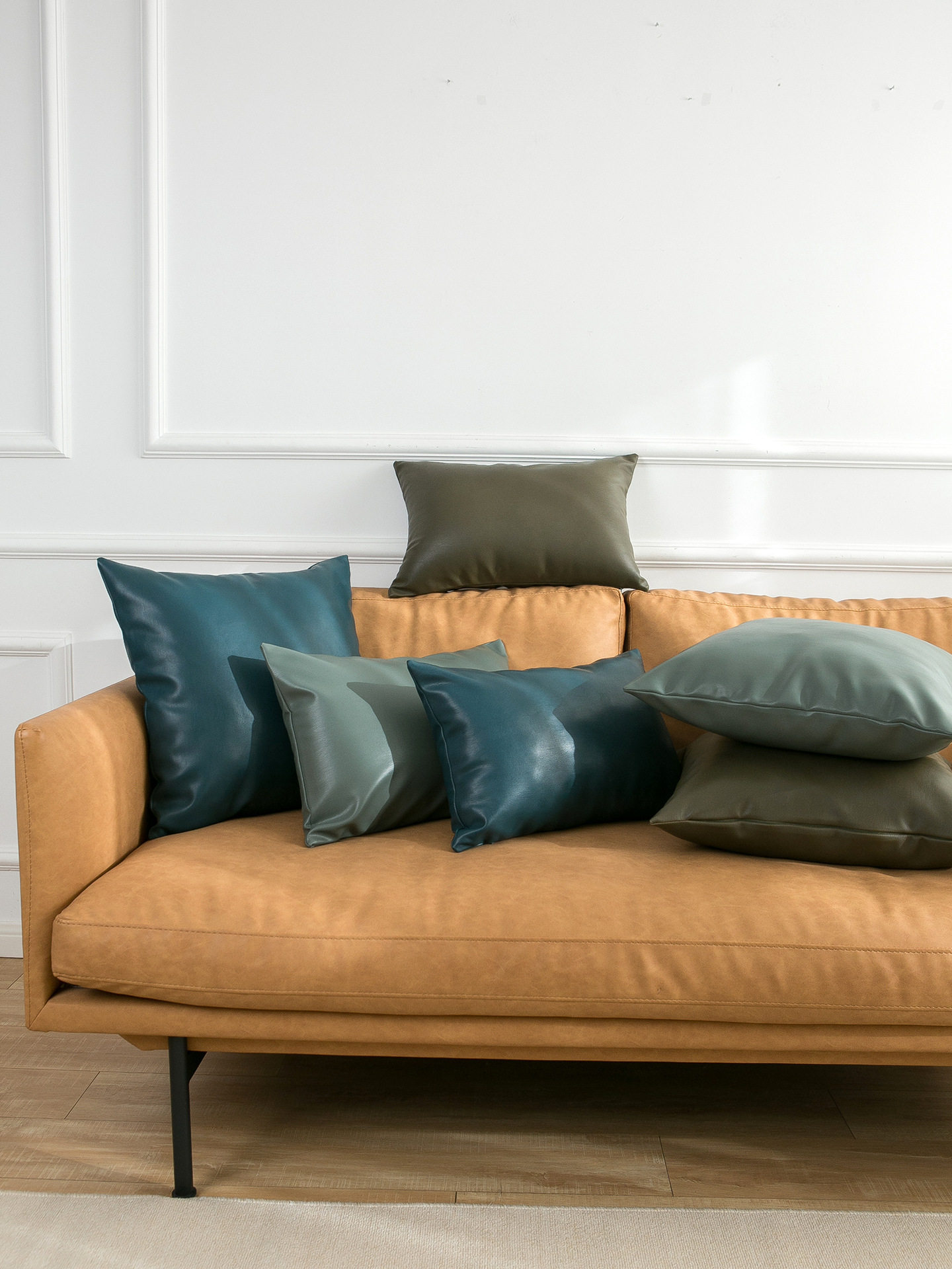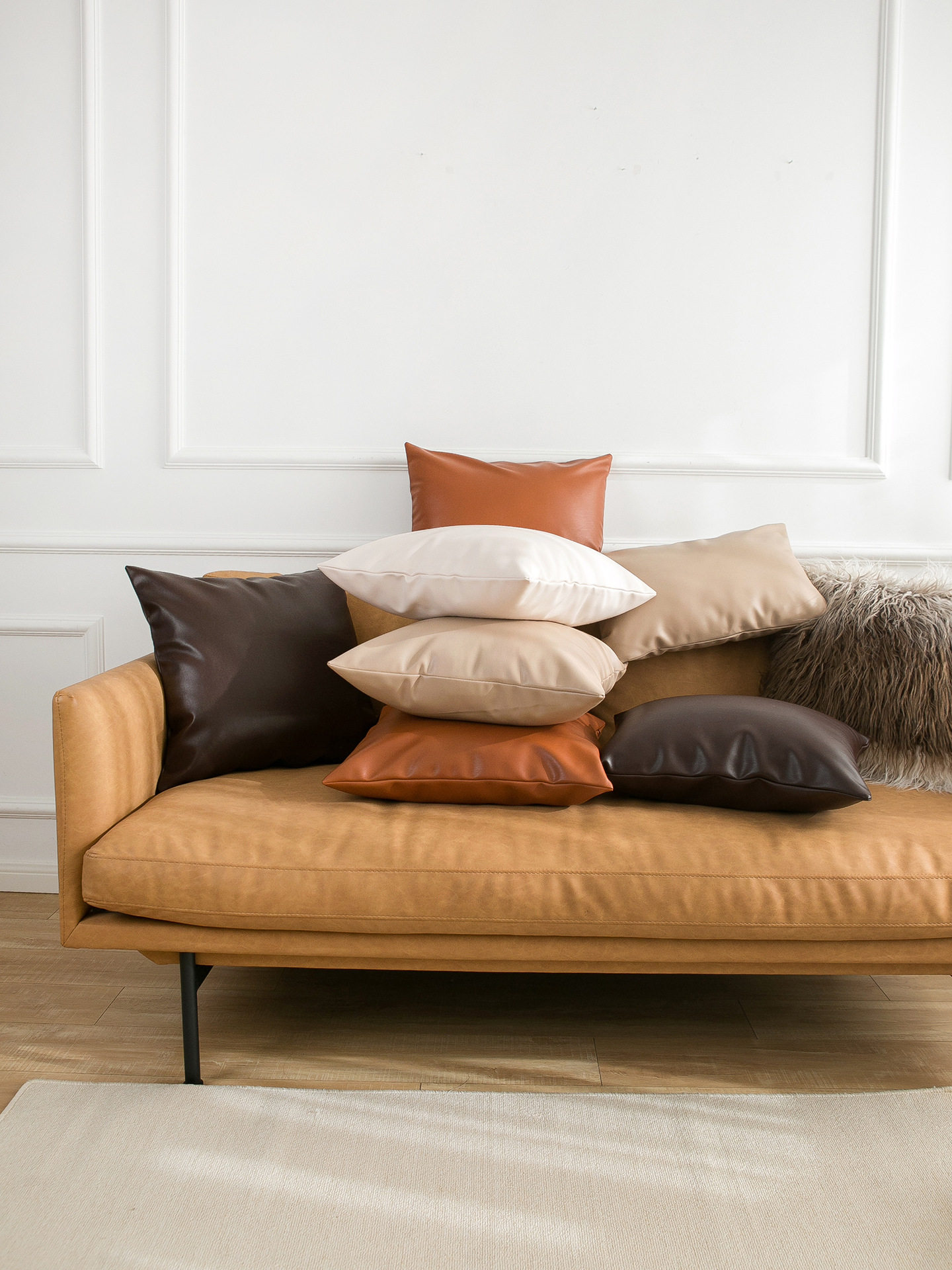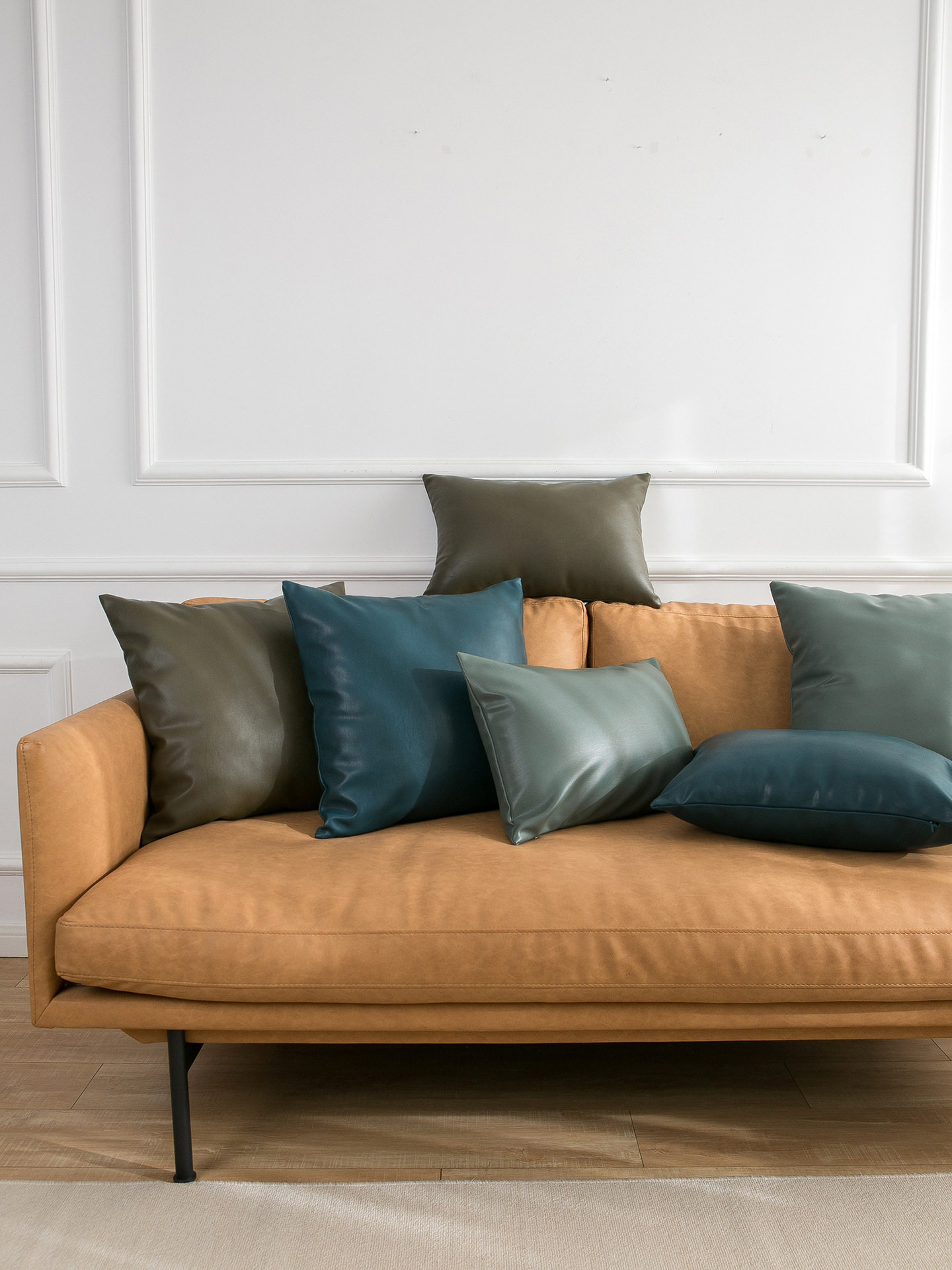 Soft Imitation Cowhide Accessible Luxury Pillow Case with Leather Texture Waist Pillow Living Room Sofa Technology Cloth Cushion Simulated Leather Pillow