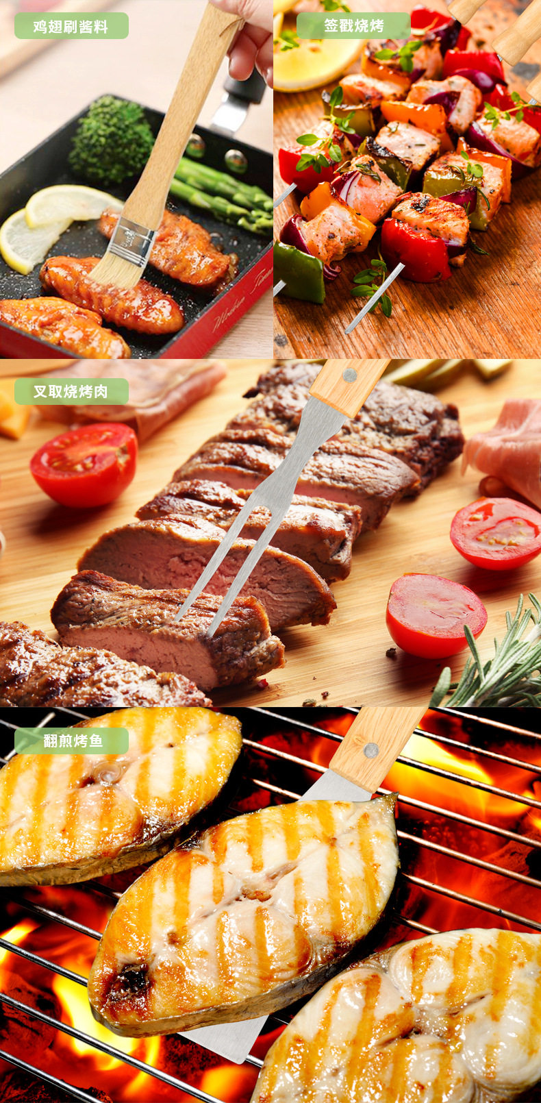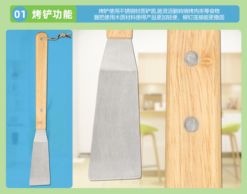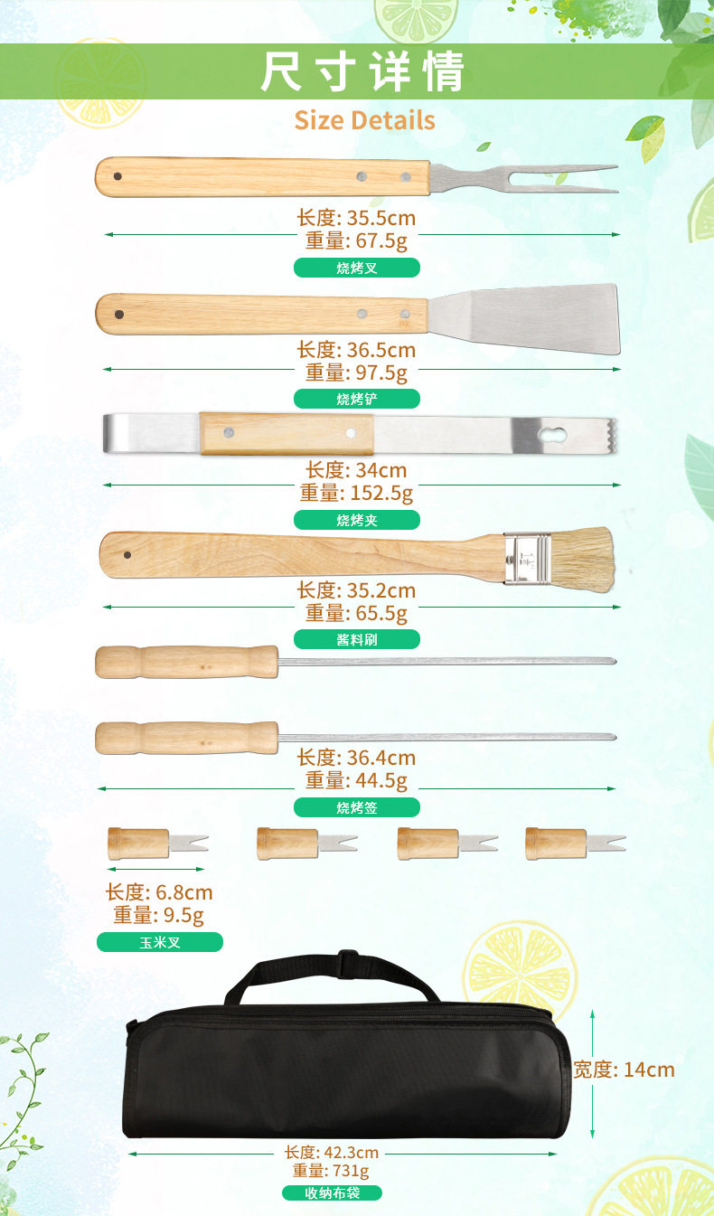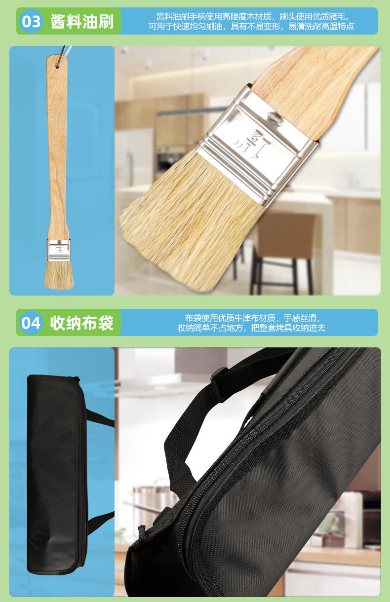 Factory in stock barbecue BBQ grill suit outdoor barbecue tools portable cloth bag wooden handle Stainless Steel Grill