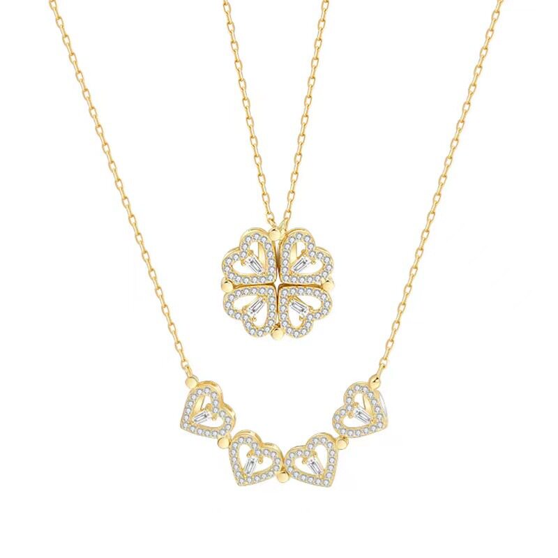 A Multi-Wear Heart Four-Leaf Clover Necklace with Diamonds and Small Hearts for Women to Give to Their Girlfriends, Titanium Steel Clavicle Chain, Elegant Gift