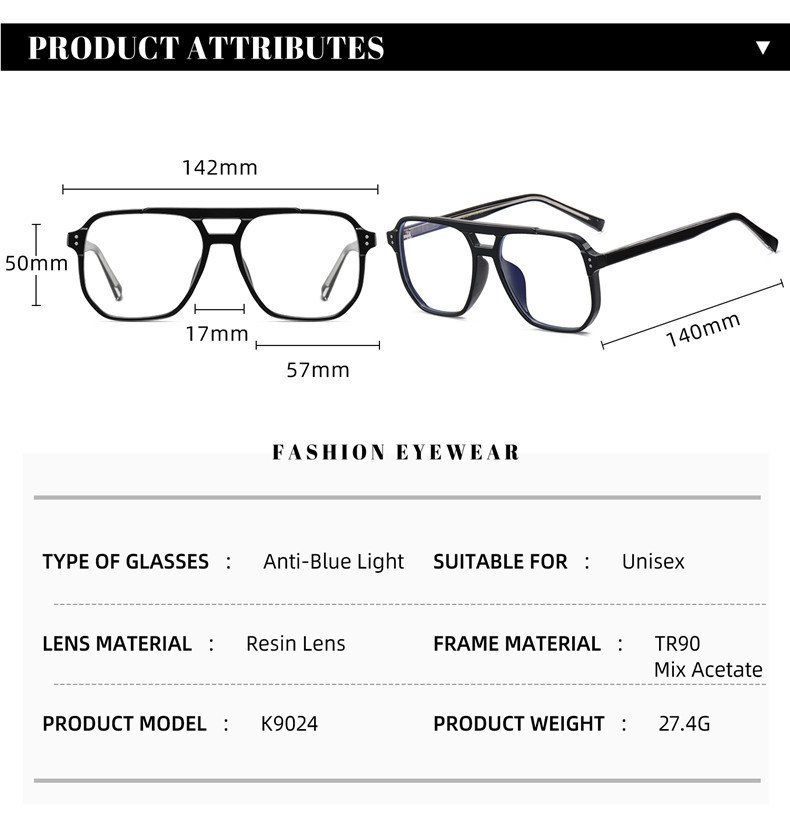 K9024 New Box Double Beam Large Frame Anti-Blue Light Flat Glasses Frame Men's Fashionable All-Match Myopia Frame Women