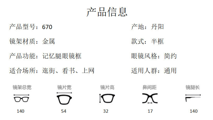 670 factory price direct supply alloy memory frame new casual business half frame glasses memory glasses frame wholesale