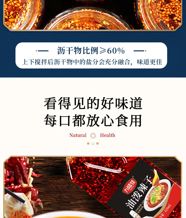 | Packaging specifications | Jiuweijia spicy oil 420ml,Six-flavor vegetables 200g spicy flavor,Six-flavor vegetables 200g spicy flavor,Six-flavor vegetables 200g spicy flavor,420g spicy six-flavor vegetables,Six-flavor vegetables 420g spicy flavor,420g spicy six-flavor vegetables |