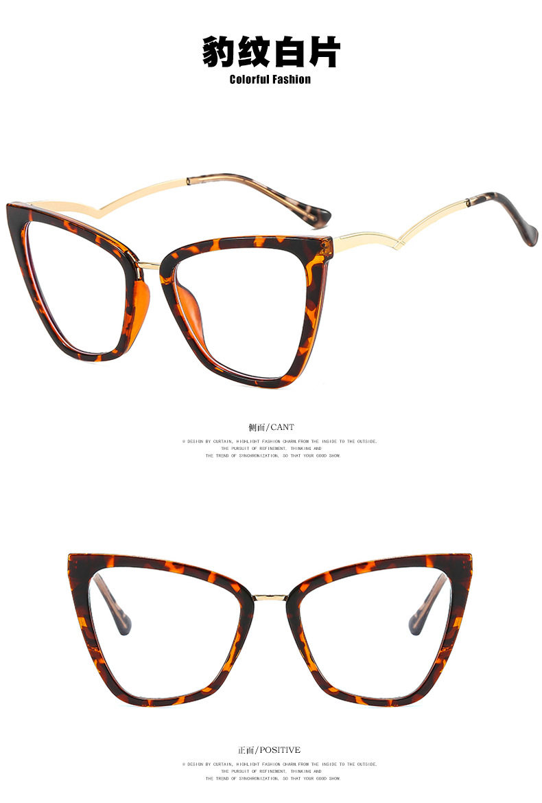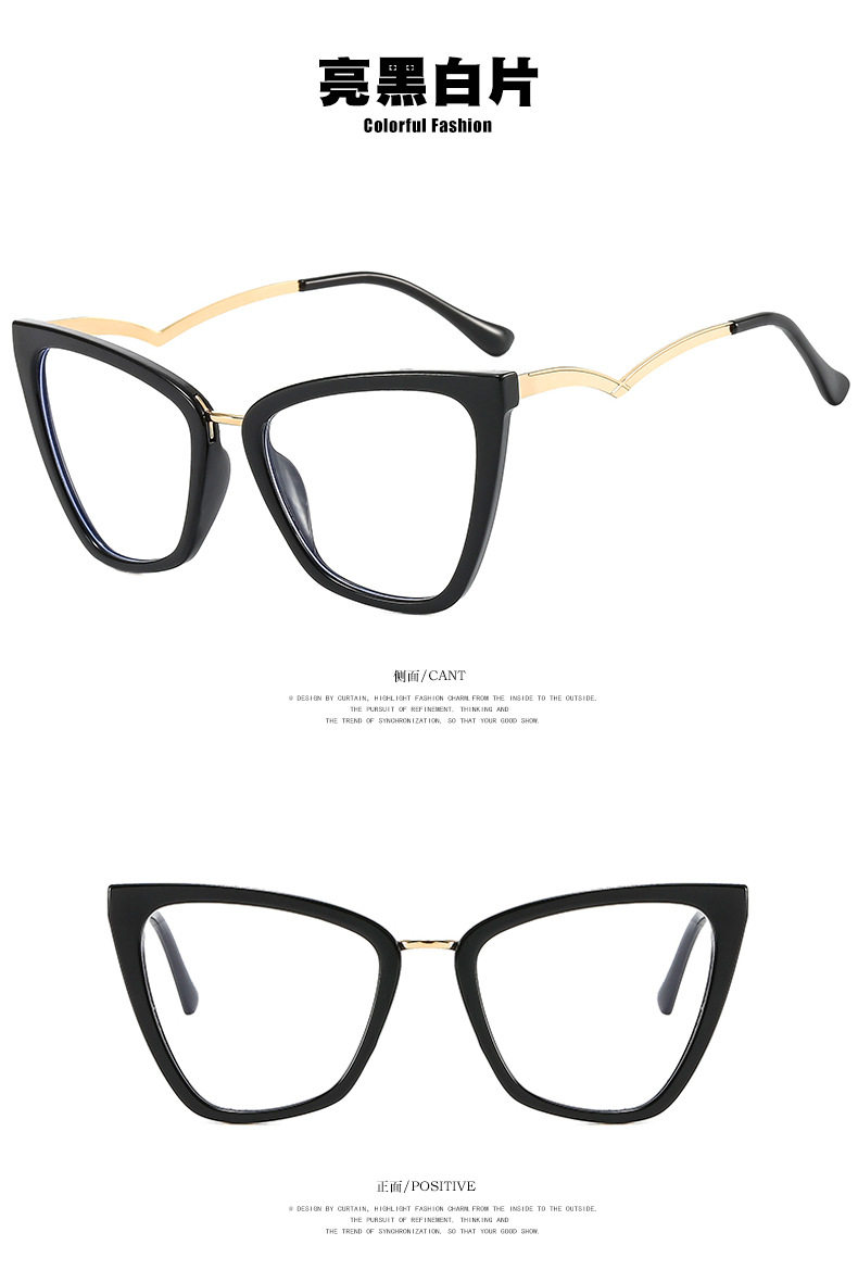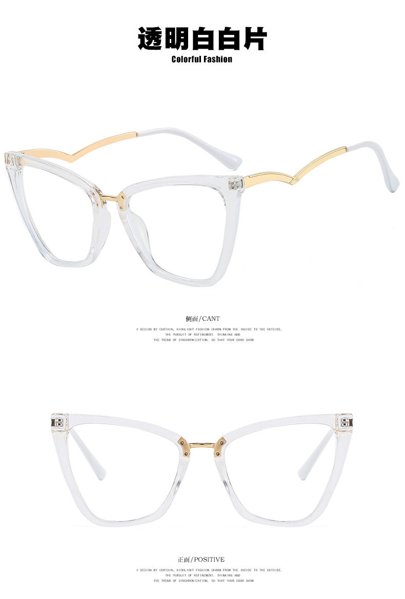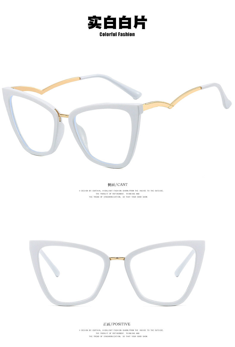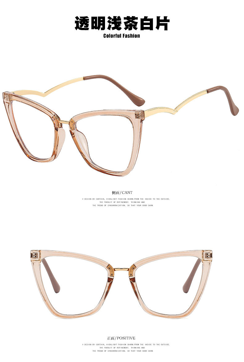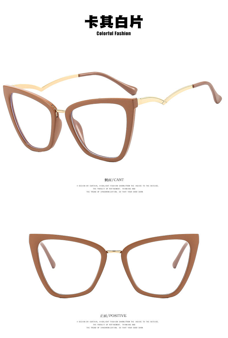 Kedun Cross-Border European and American Cat-Eye Non-Prescription Glasses, Anti-Blue Light, Curved Temples, 2022 New Style Eyeglass Frames, Stylish for Photos, Ins